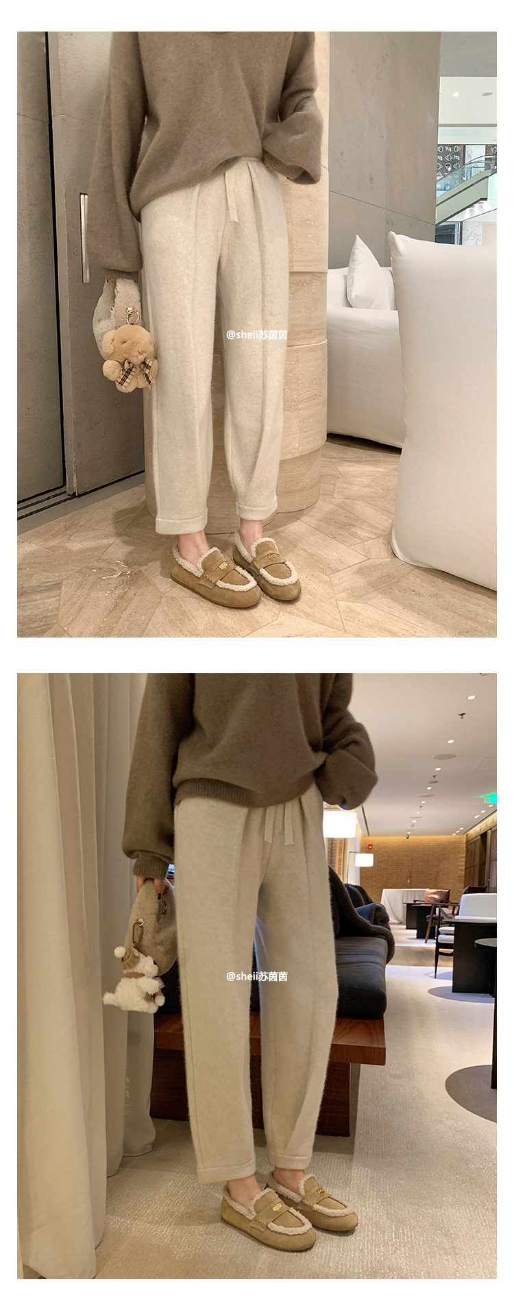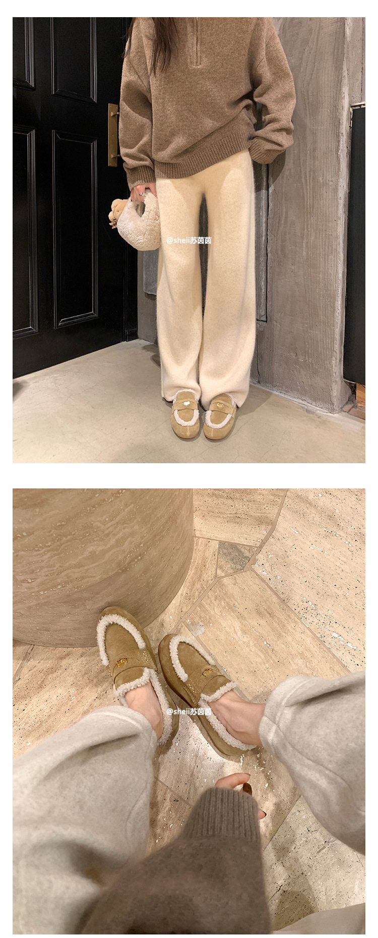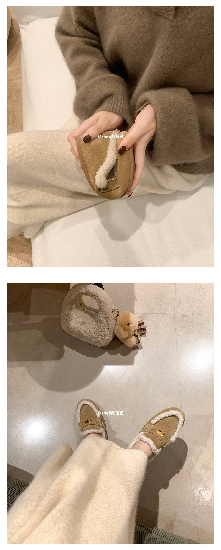 【蘇家同款】蘇黎雪~保温性のある裏起毛のレディースフラットシューズ、モコモコのレザーシューズ、レディースシューズ