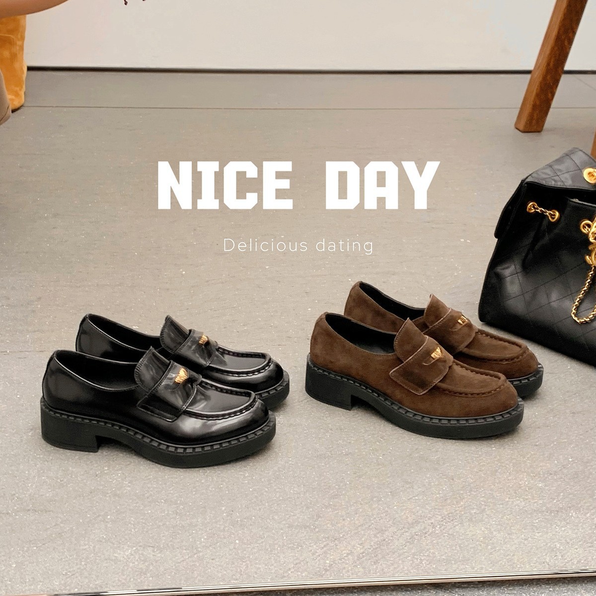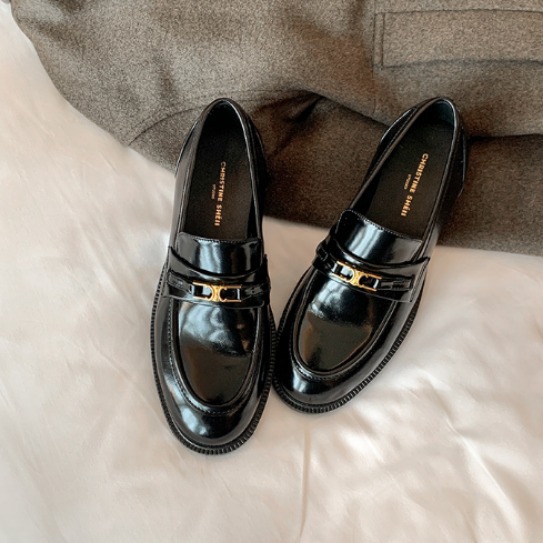 【蘇家同型】張元英同型~アミウ金貨粗ヒールローファーシューズレディースレザーシューズ