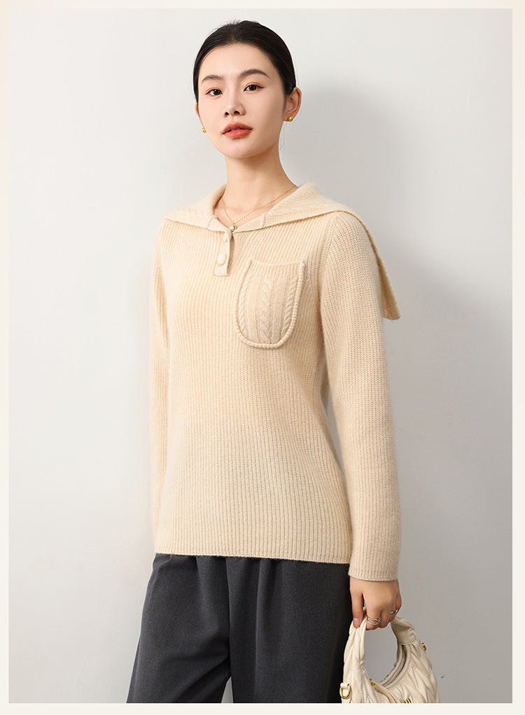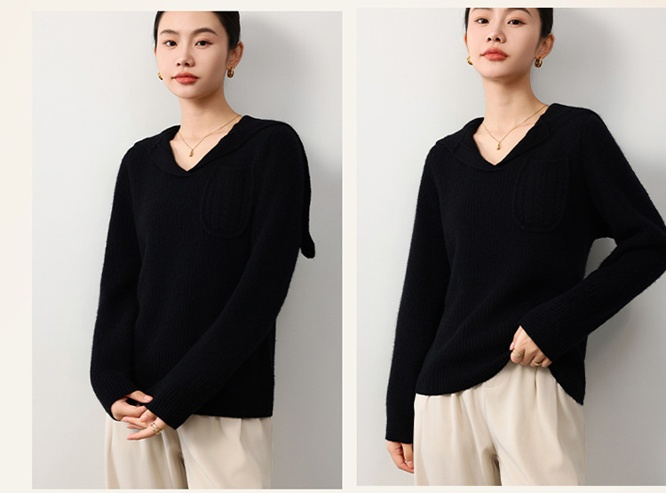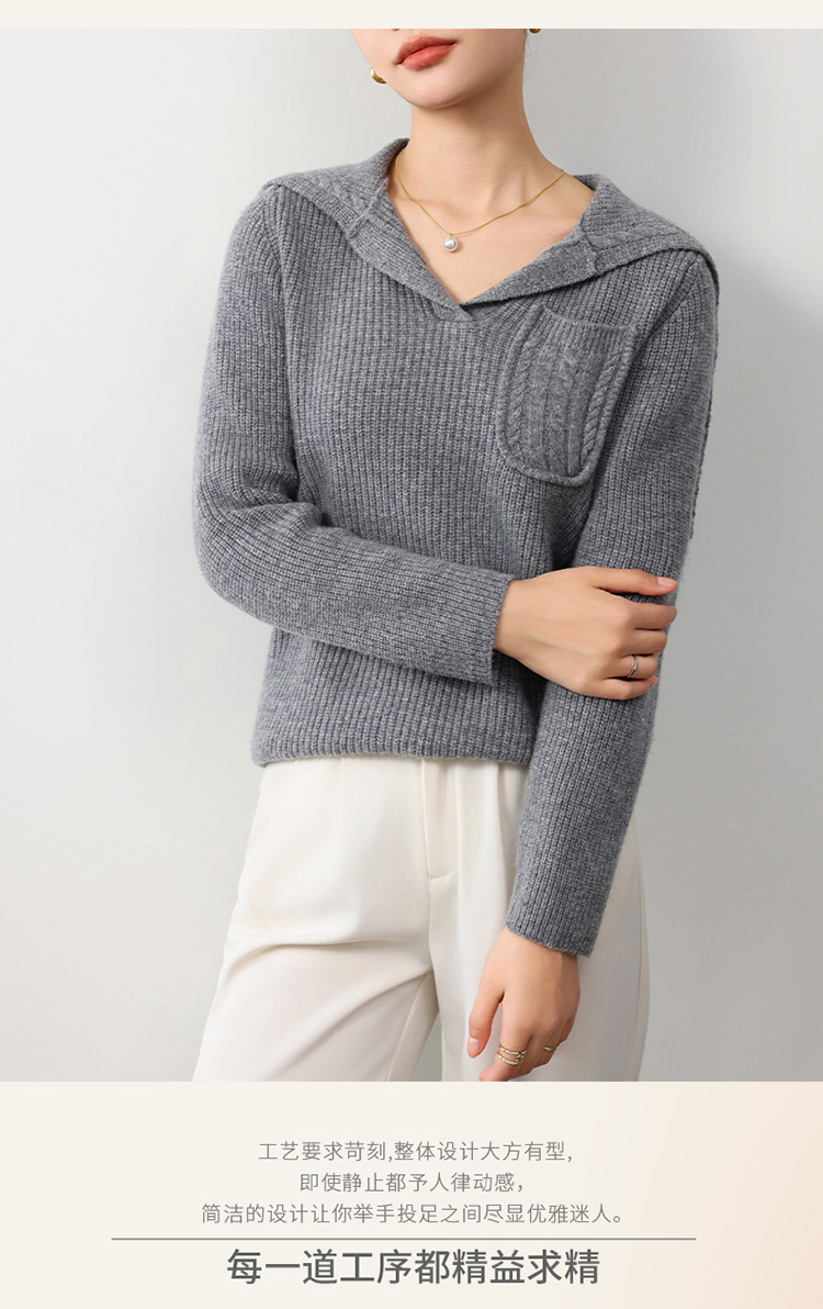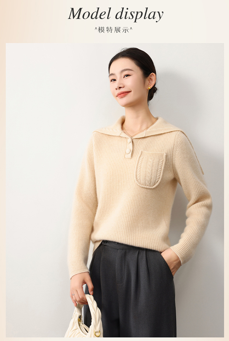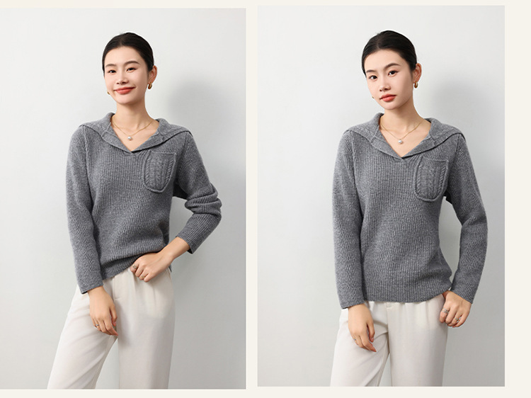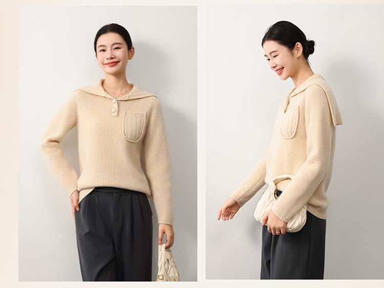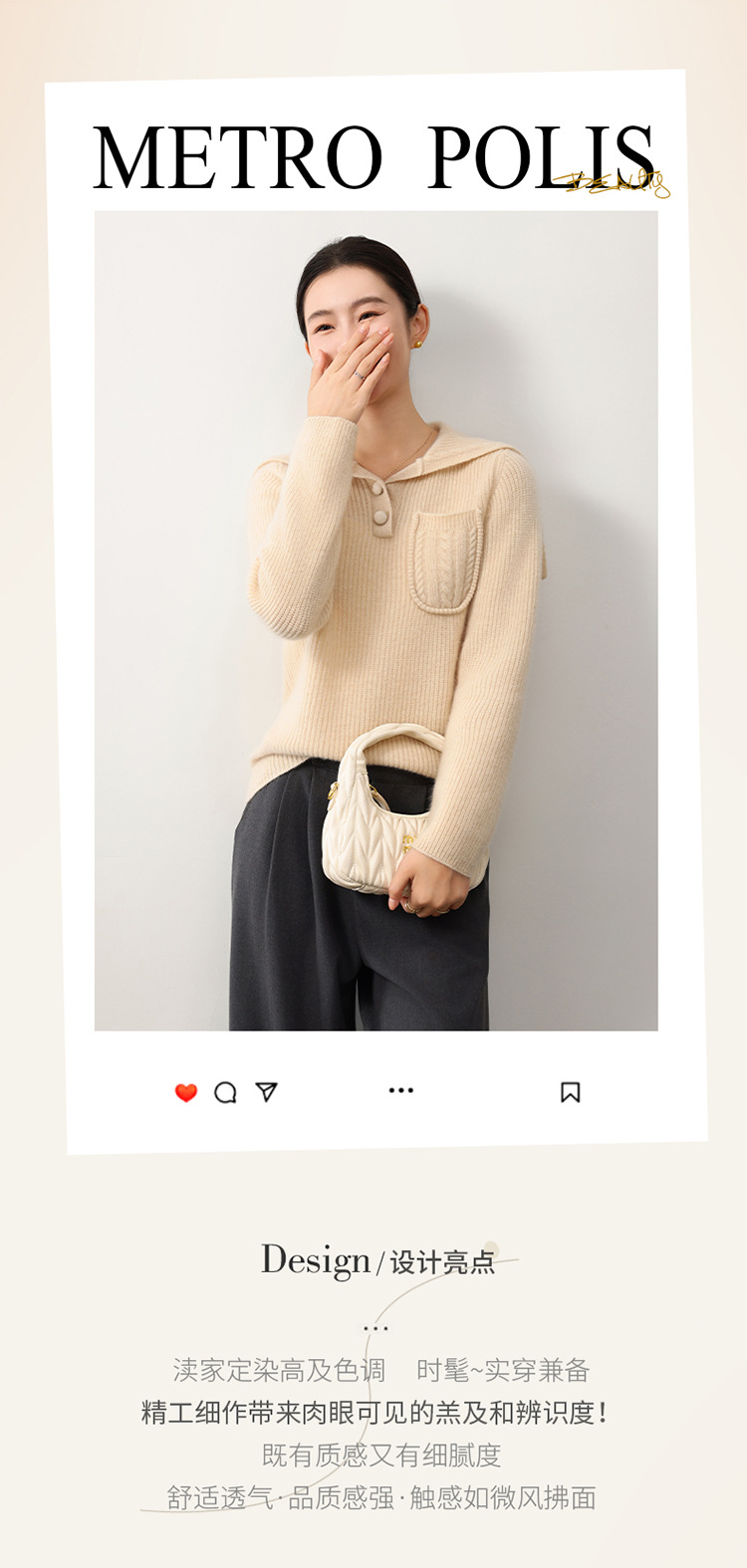 純粋なウールの気質の海軍の襟のニットのシャツの2024年の秋冬の新型の花のプルオーバーのニットのセーター
