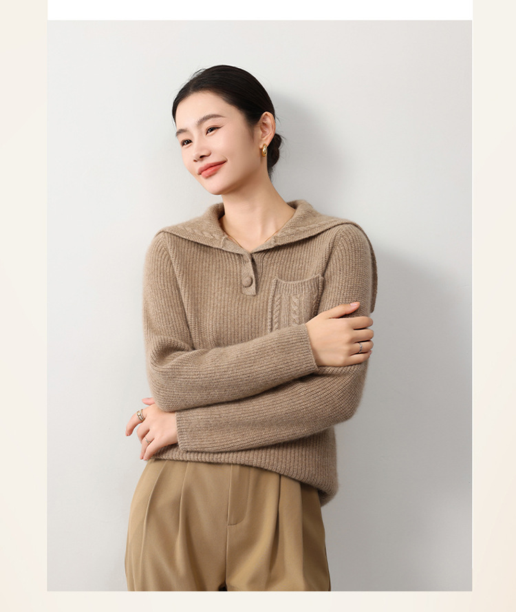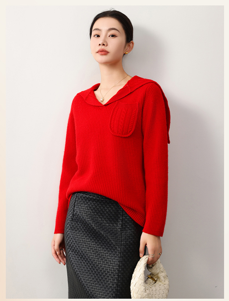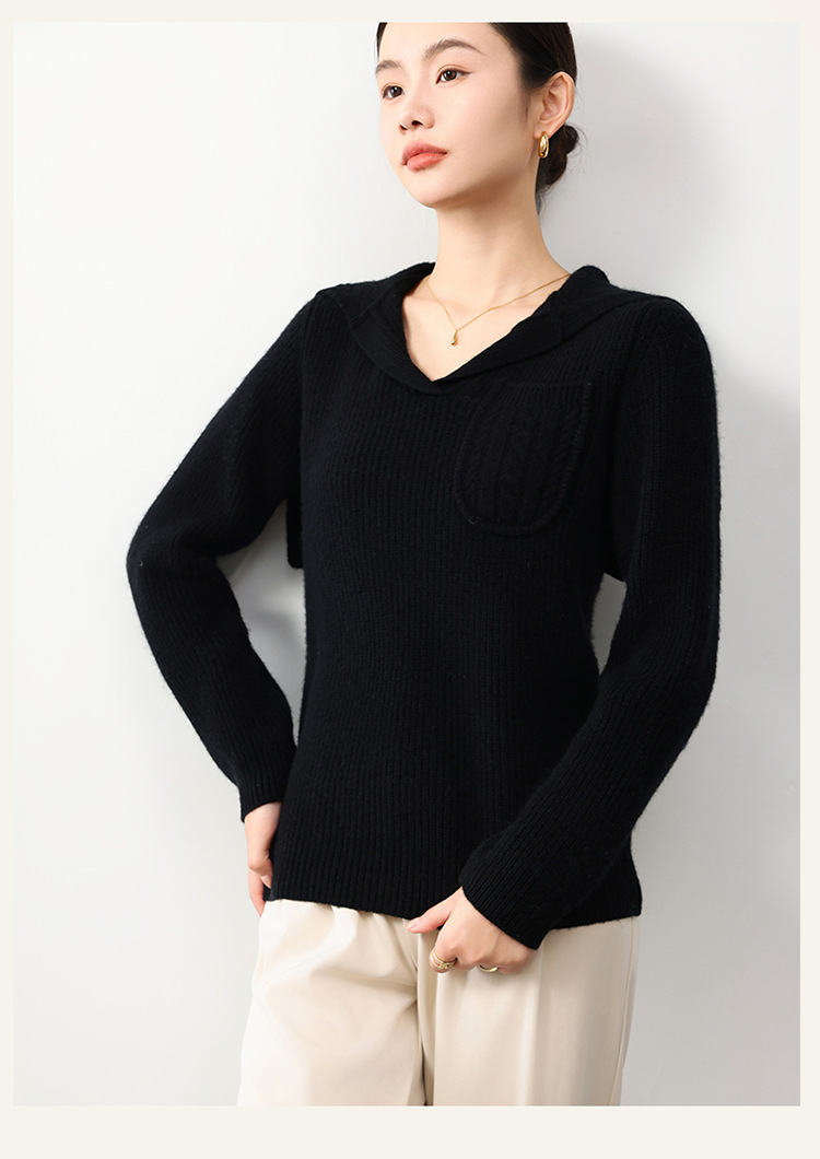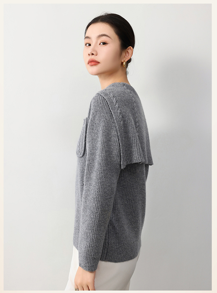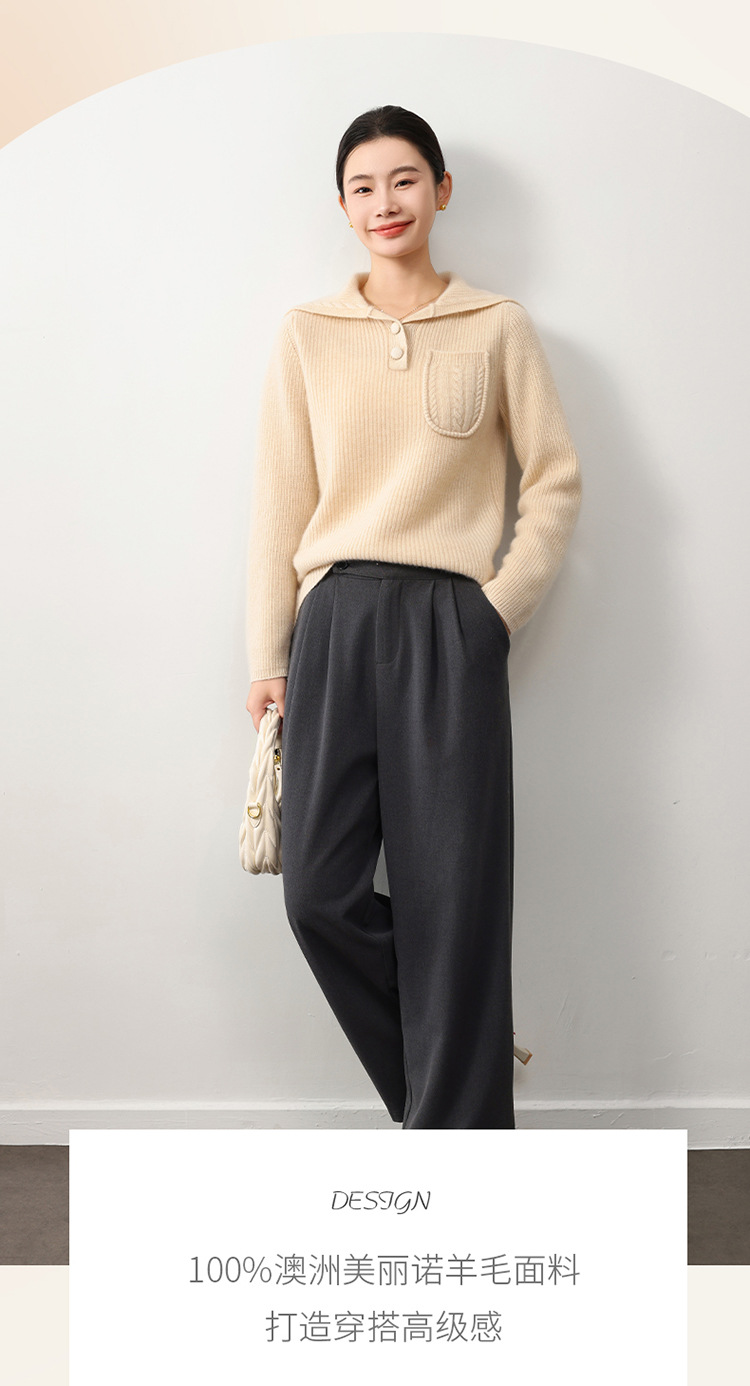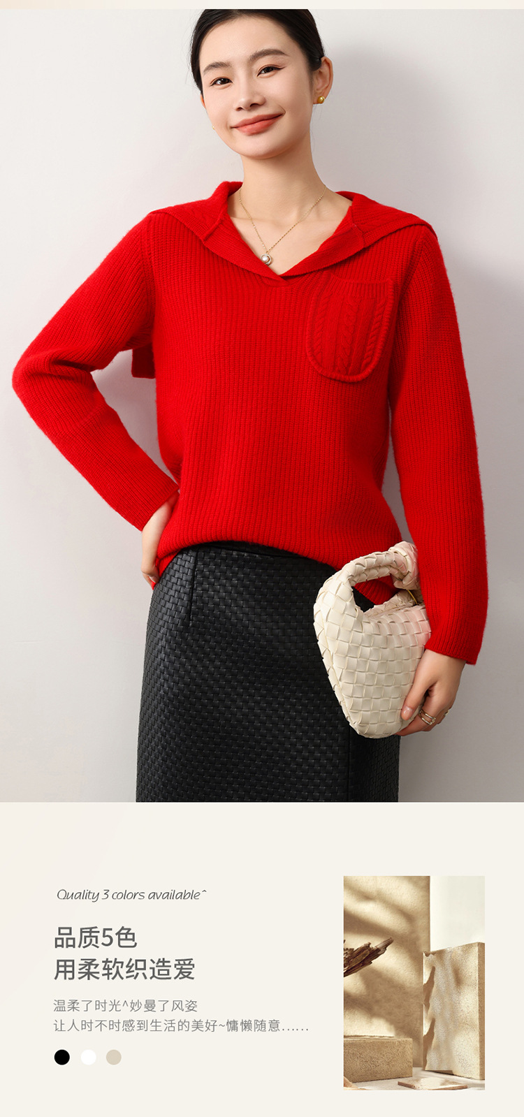 純粋なウールの気質の海軍の襟のニットのシャツの2024年の秋冬の新型の花のプルオーバーのニットのセーター