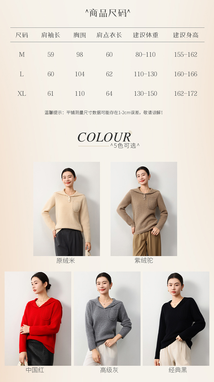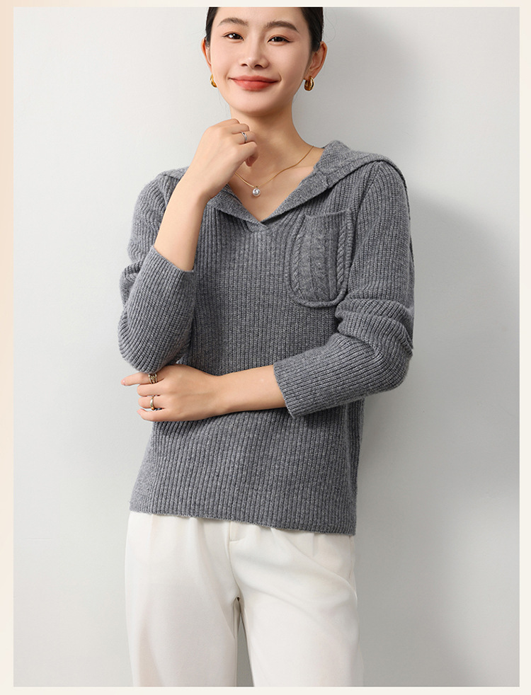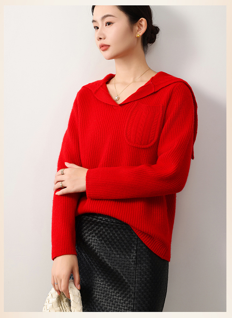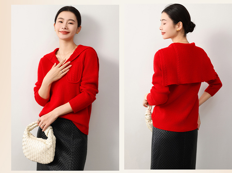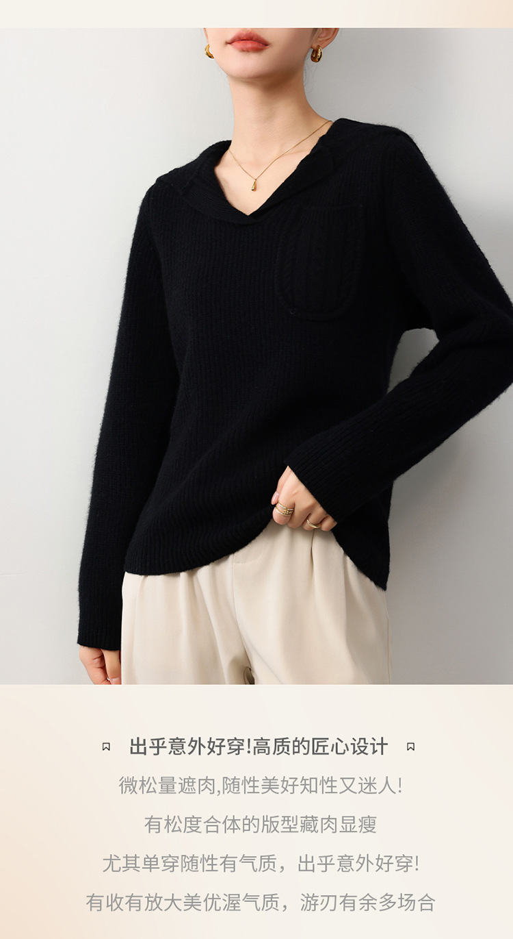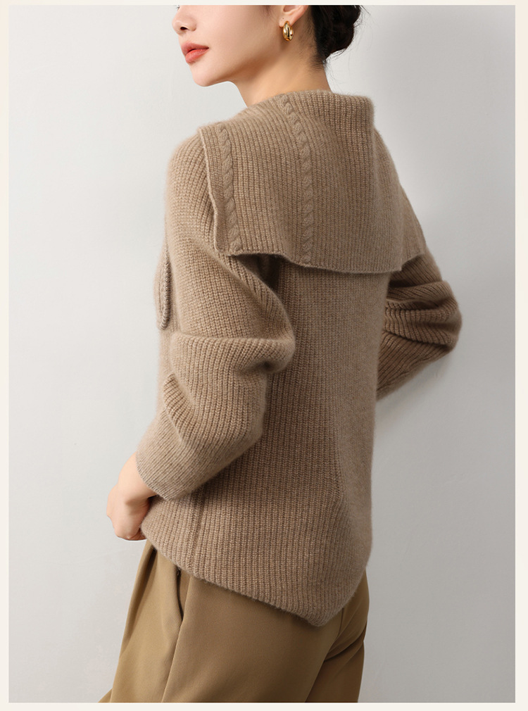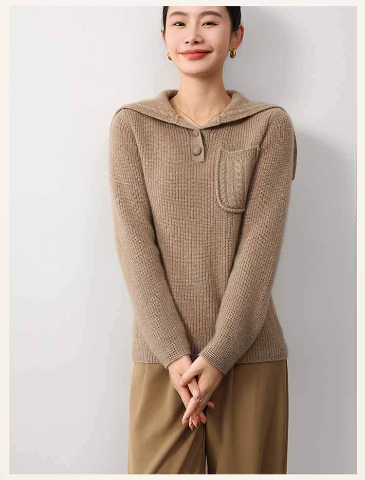 純粋なウールの気質の海軍の襟のニットのシャツの2024年の秋冬の新型の花のプルオーバーのニットのセーター