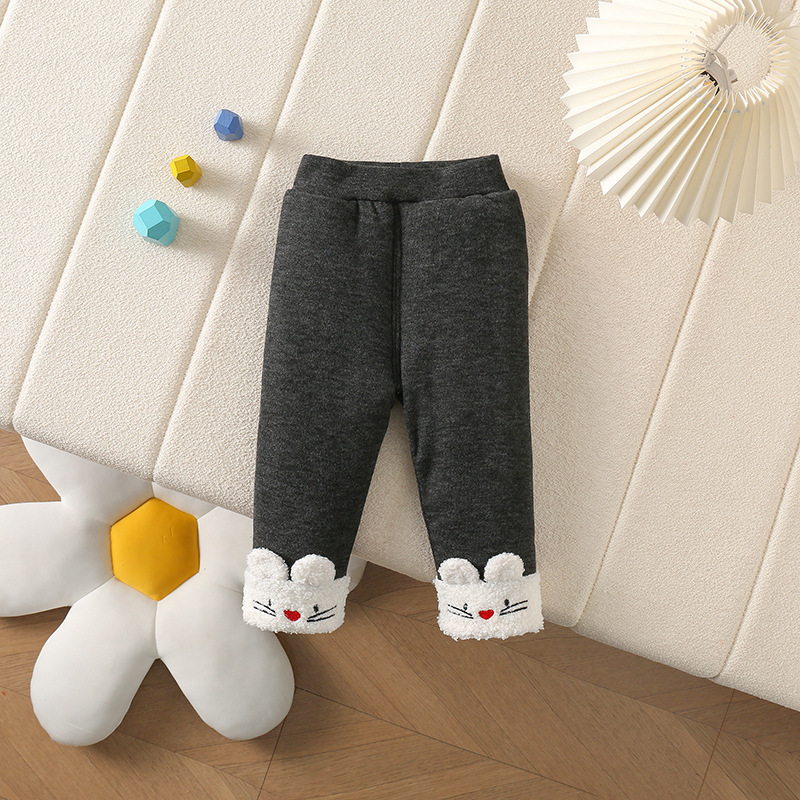 女の子のウサギの耳にベルベットのレギンスを厚くして、秋冬の女の子の一体のベルベットの羊のベルベットの外に保温ズボンを着ている