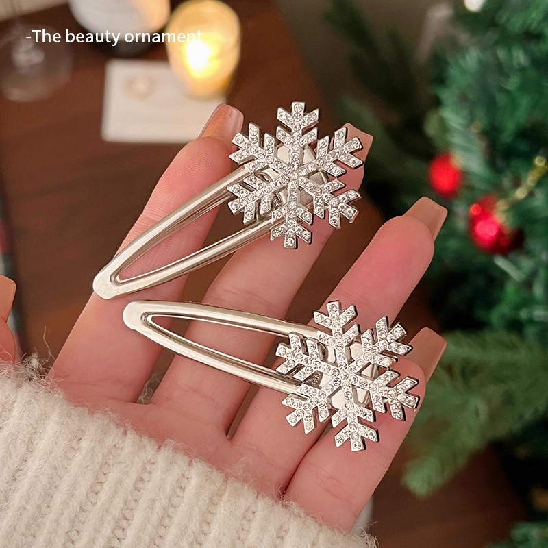 可爱甜美雪花发卡新年发夹女前额侧边夹氛围感装扮鸭嘴夹子头饰品