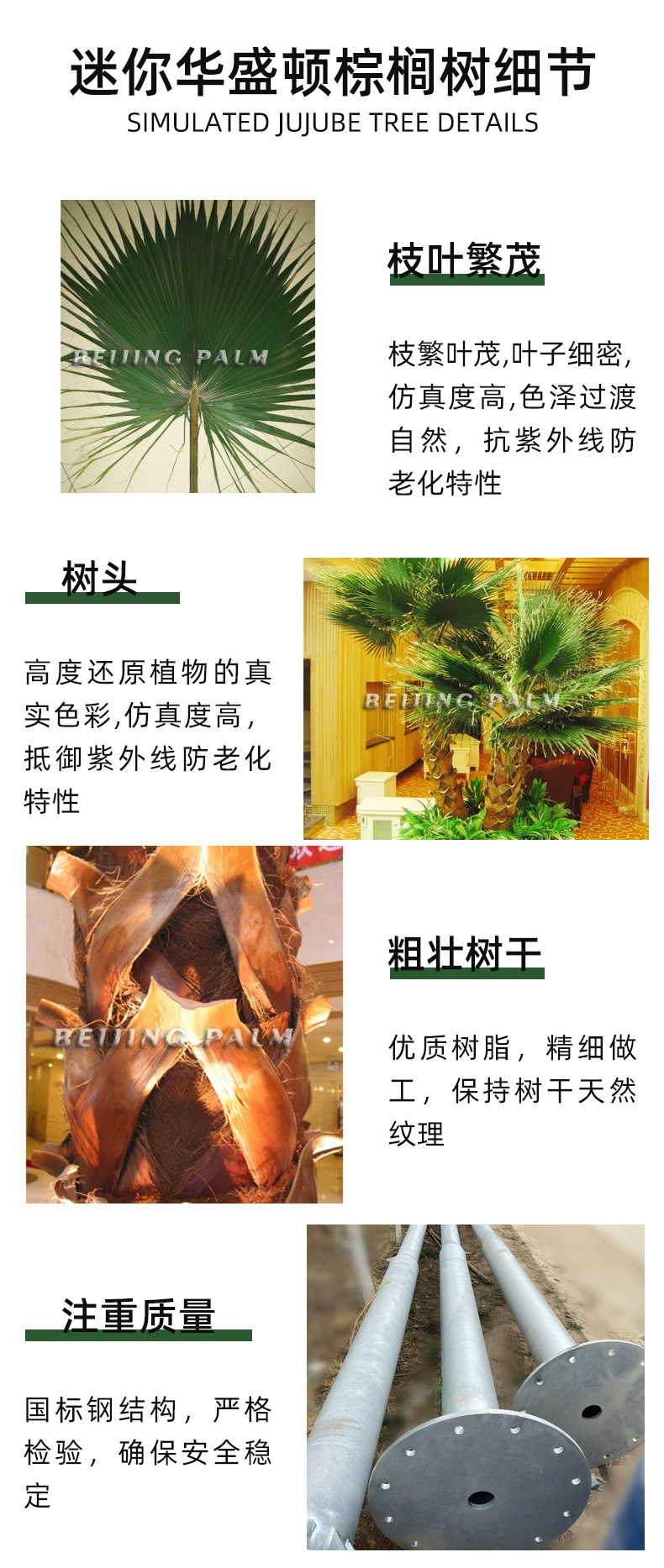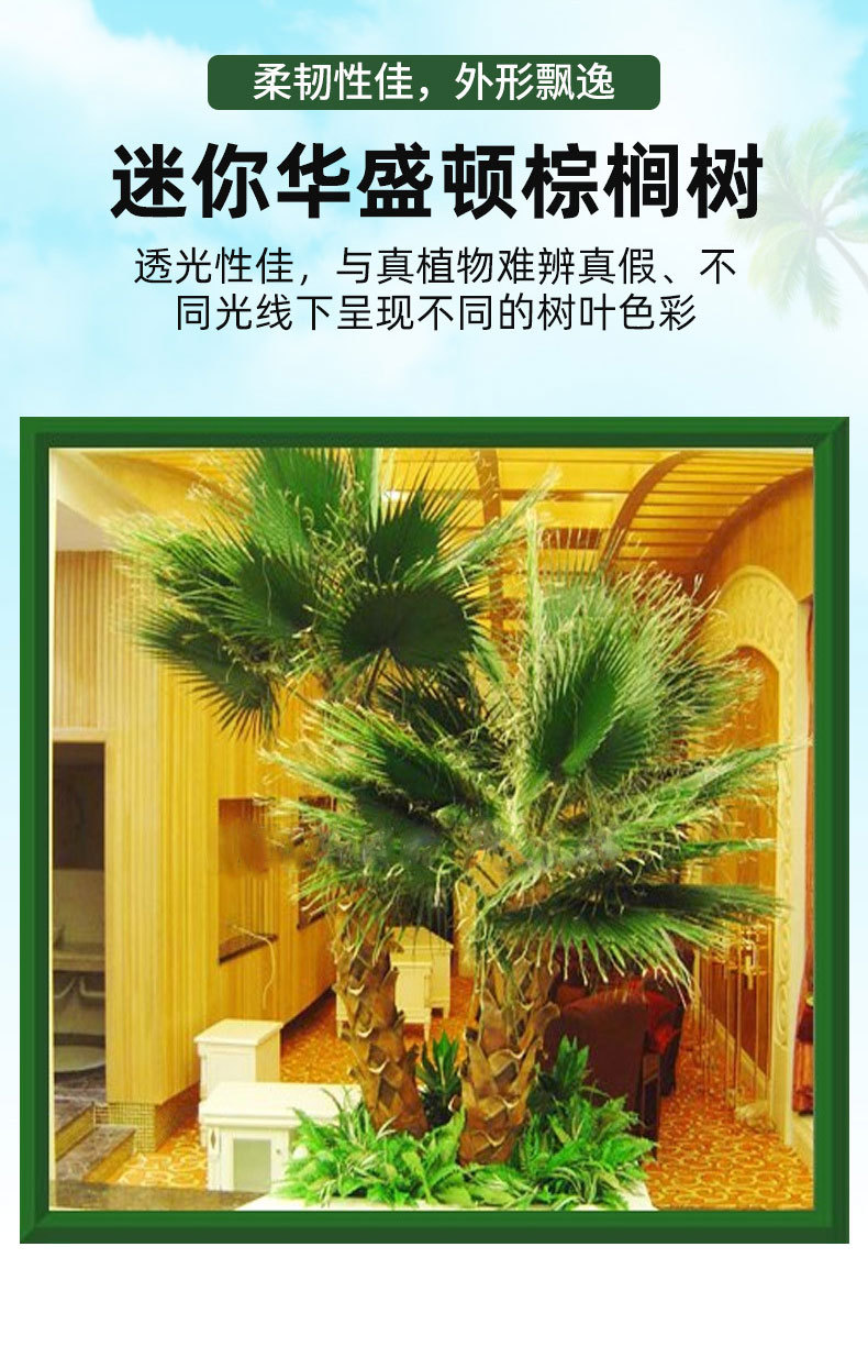 パームの木のミニワシントンパームの木の偽の木の環境保護の難燃性の室内の植物のデパートの景観の木をシミュレーションします。
