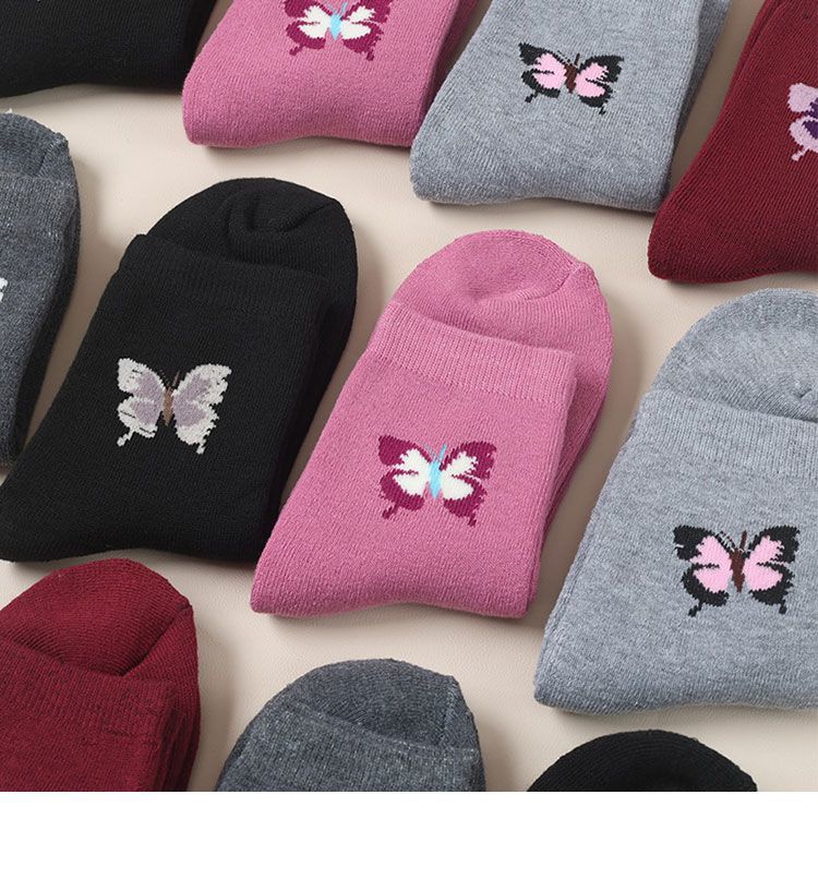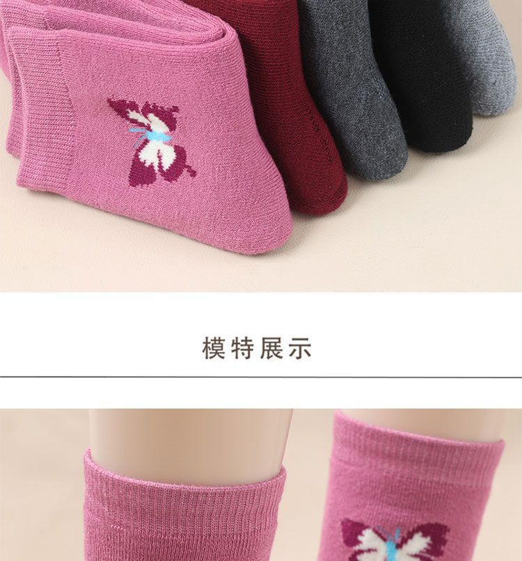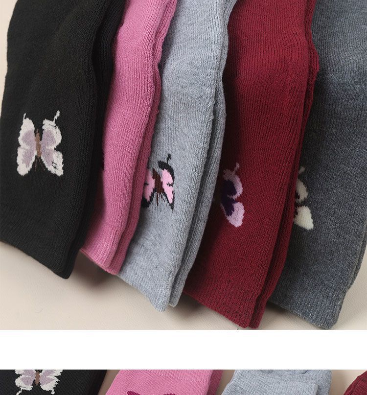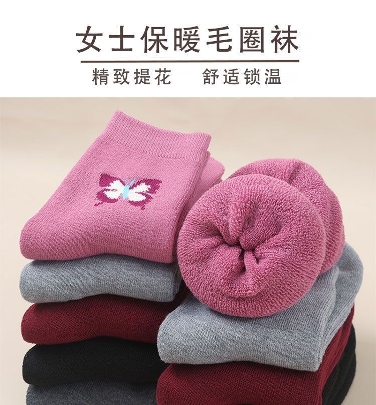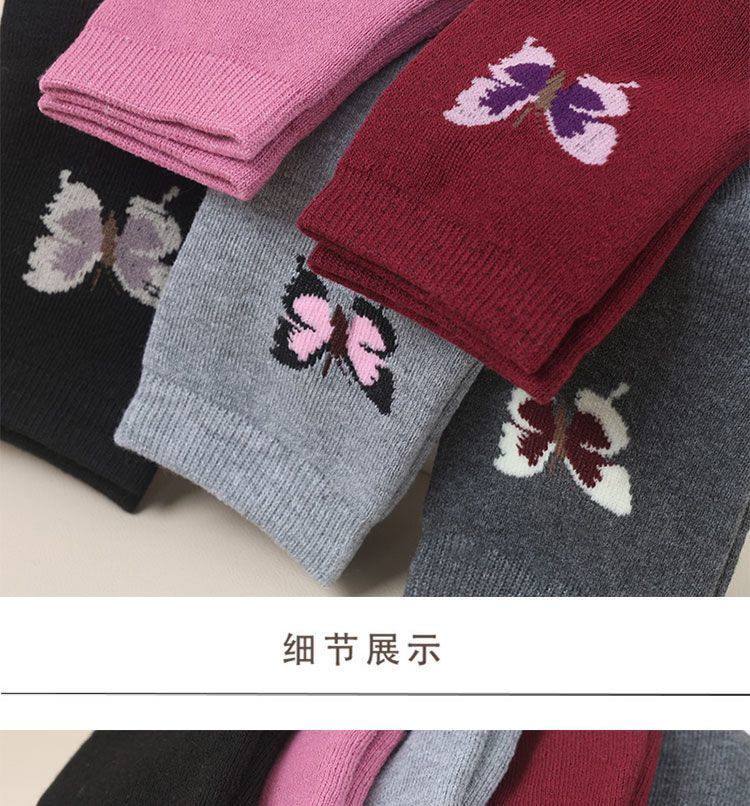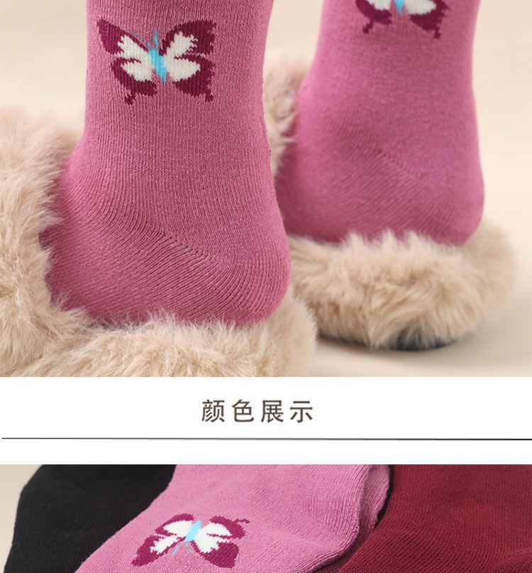 蝶さん秋冬秋冬靴下の女性の中筒保温中筒大人のベルベットはお母さんの毛輪の冬を厚くします