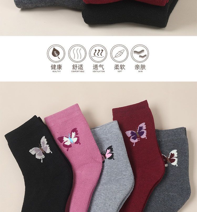 靴下レディースママ靴下防臭春秋四季広口ジャカードミドルストッキング高齢者おばあちゃん女性靴下