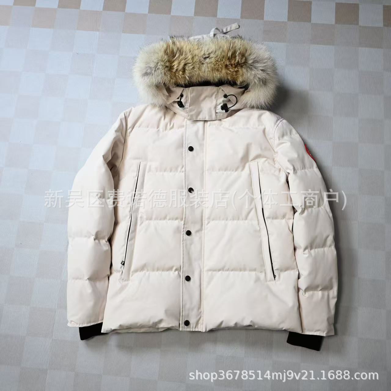 メンズ フォックス ファー フード付き ダウン ボンバー ジャケット パーム ムース