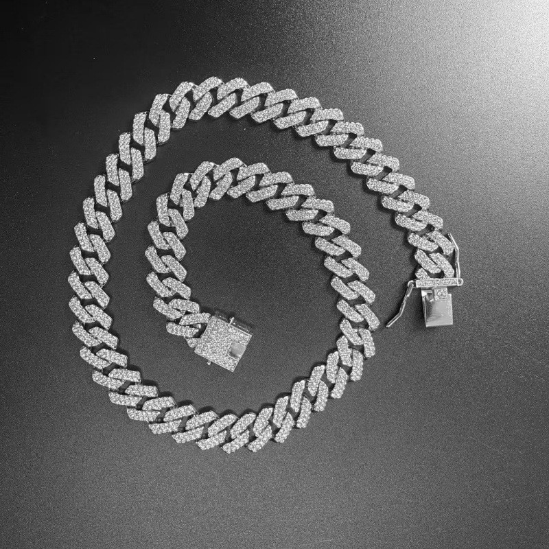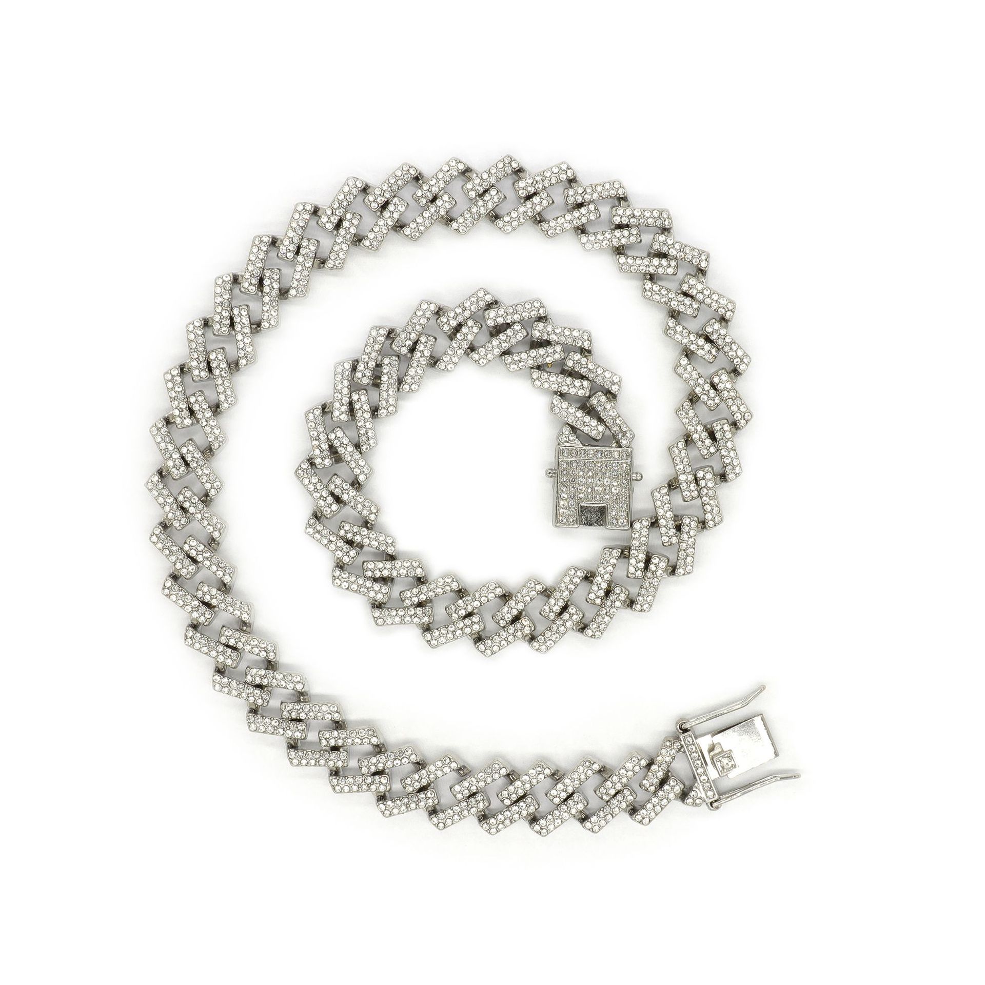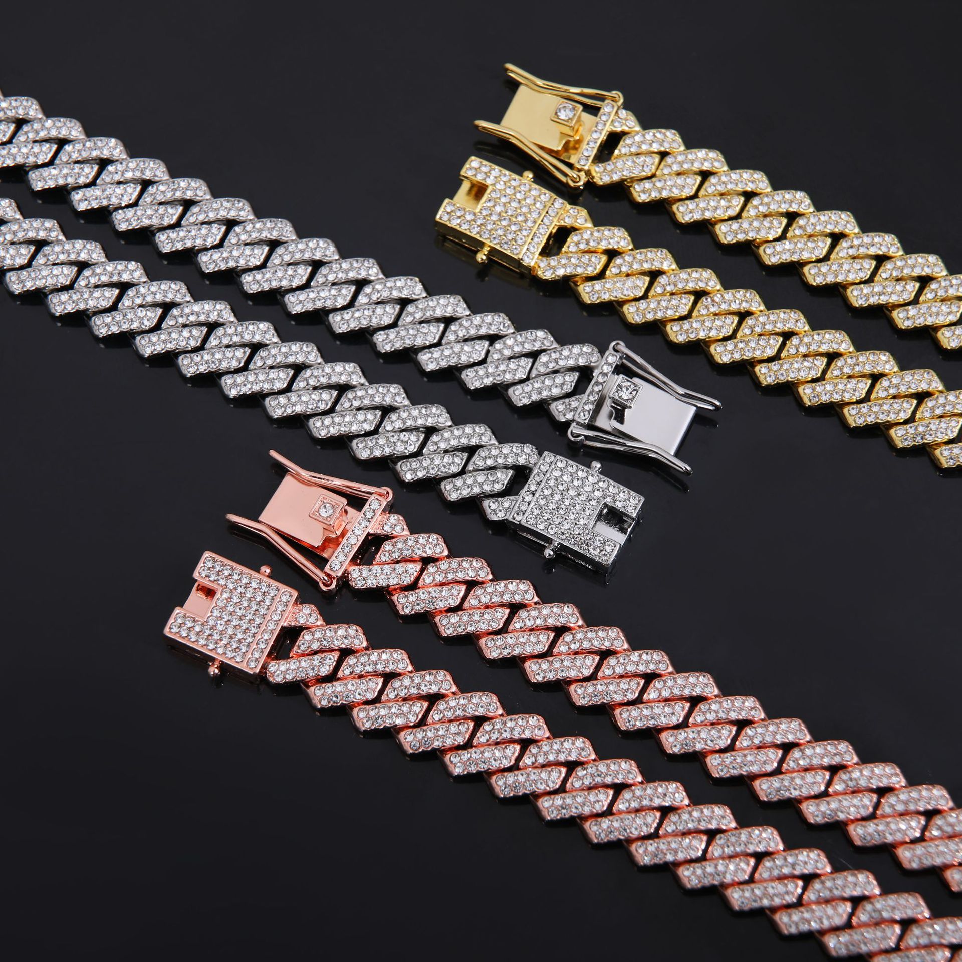 欧美跨境爆款14mm菱形古巴链锌合金项链满钻嘻哈潮男女时尚品质批