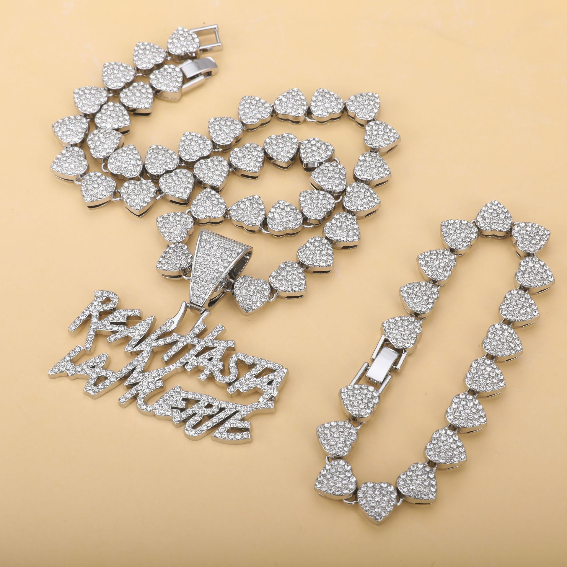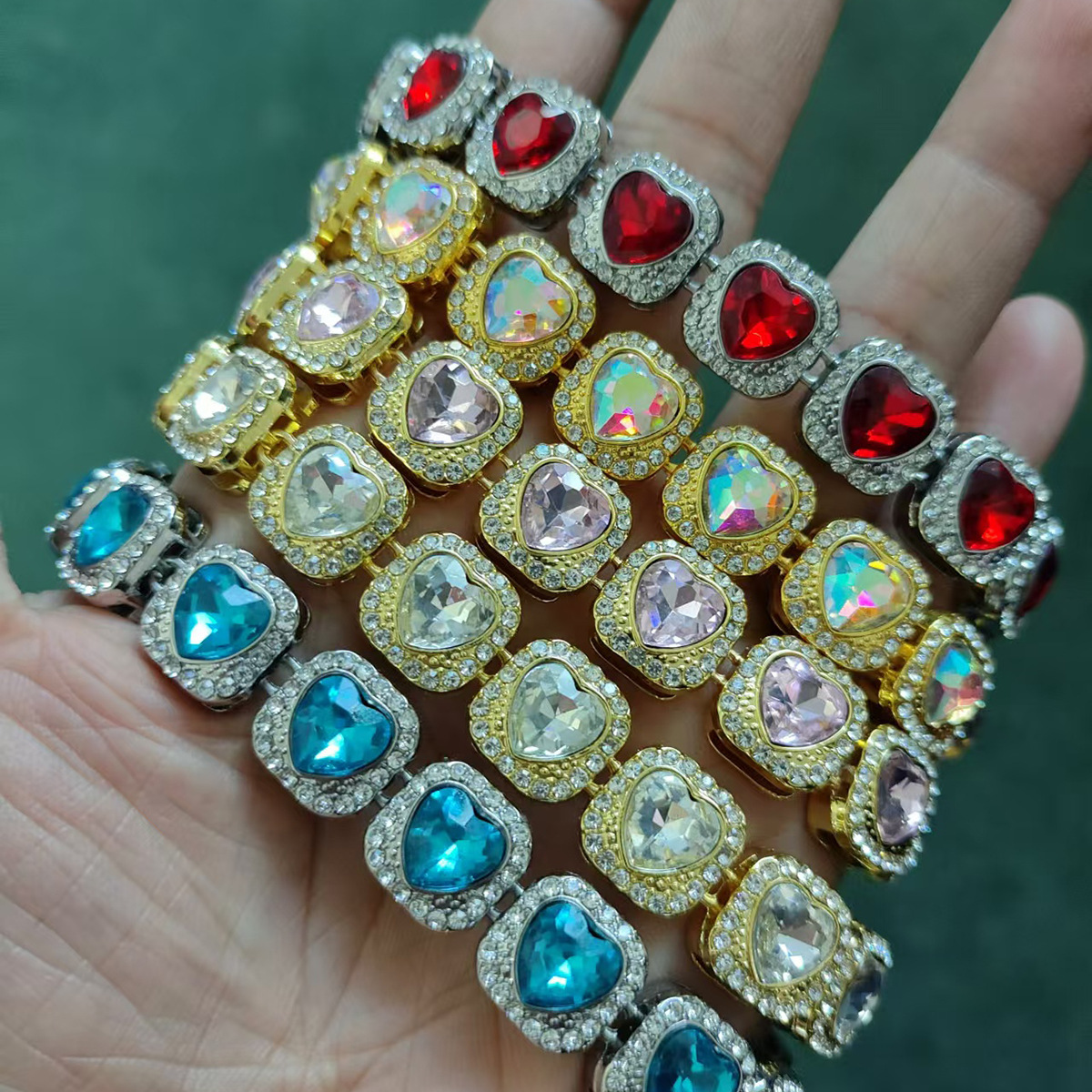新しい愛の氷糖のチェーンの亜鉛合金の桃の心のキューバのネックレスの男女の通用するブレスレットの鎖の骨のチェーンの現物は卸売りします。