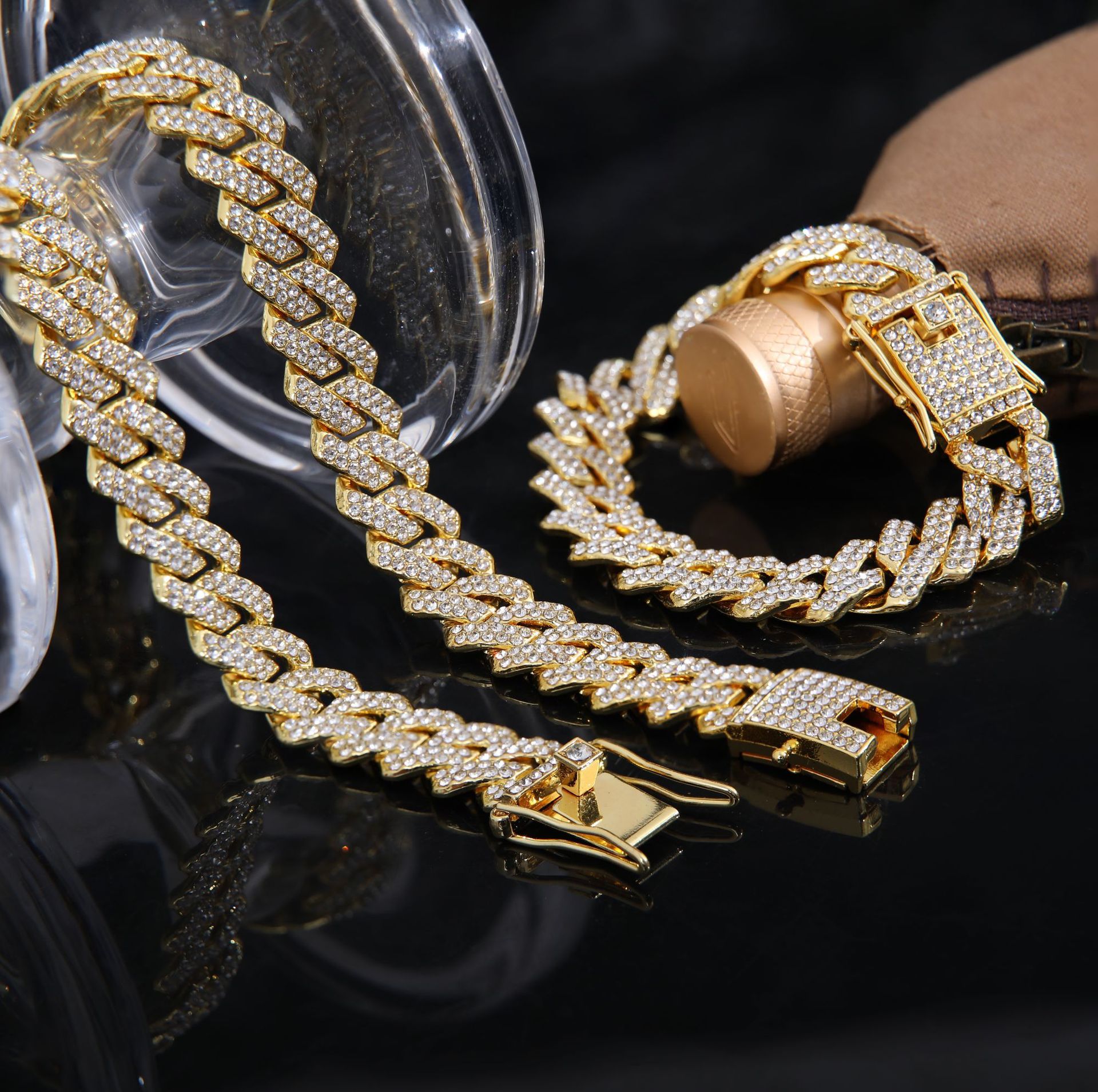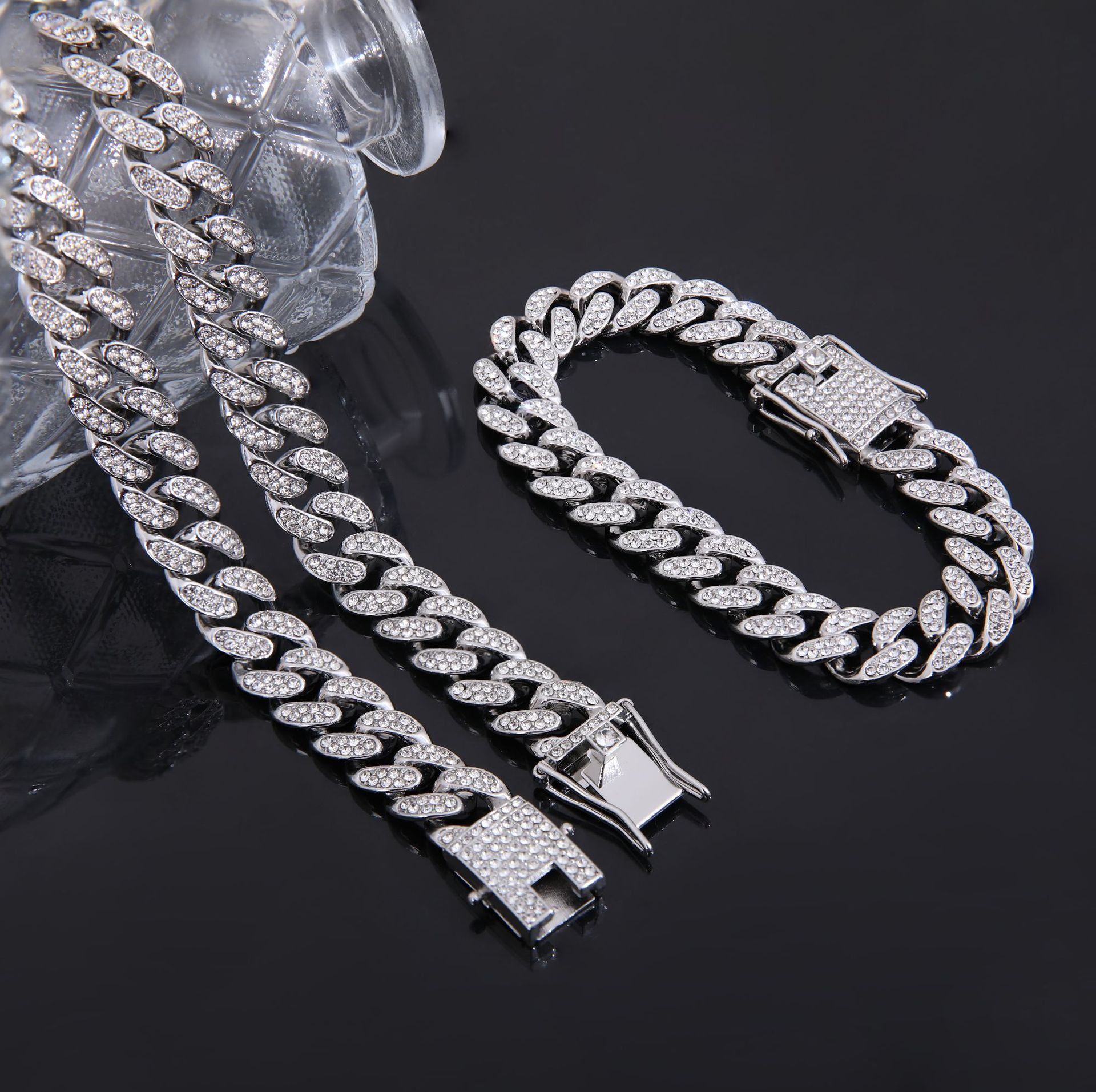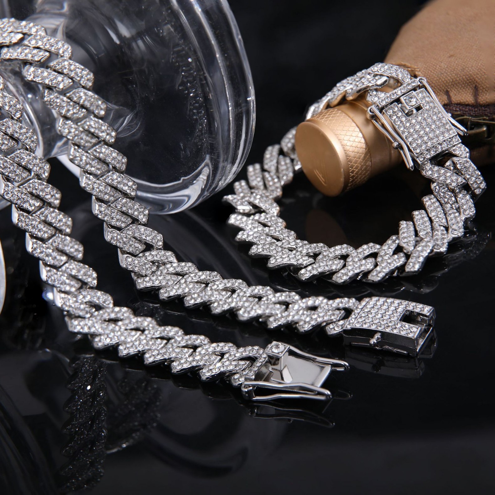 ヒップホップネックレス誇張スタイル 15 ミリメートルダイヤモンドフルダイヤモンドネックレスブレスレットキューバチェーンファッションヨーロッパとアメリカのストリートジュエリー工場