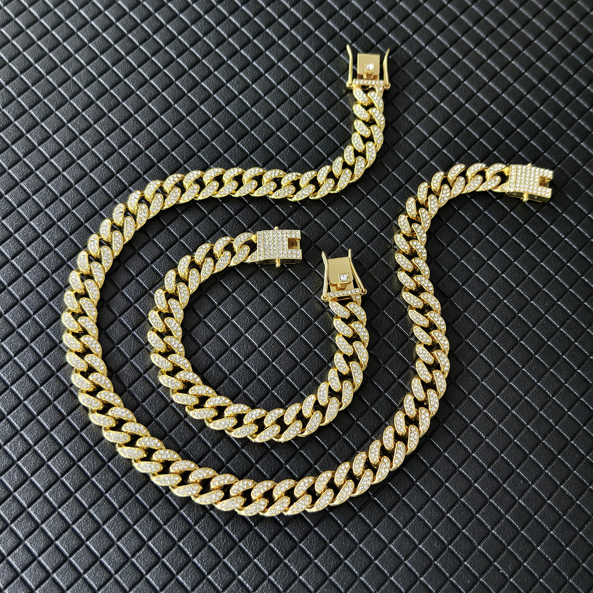 ヨーロッパとアメリカのヒップホップの個性トレンドダイヤモンドがちりばめられたクラシックな13mmキューバチェーンネックレスメンズ横暴なクロスボーダージュエリー工場