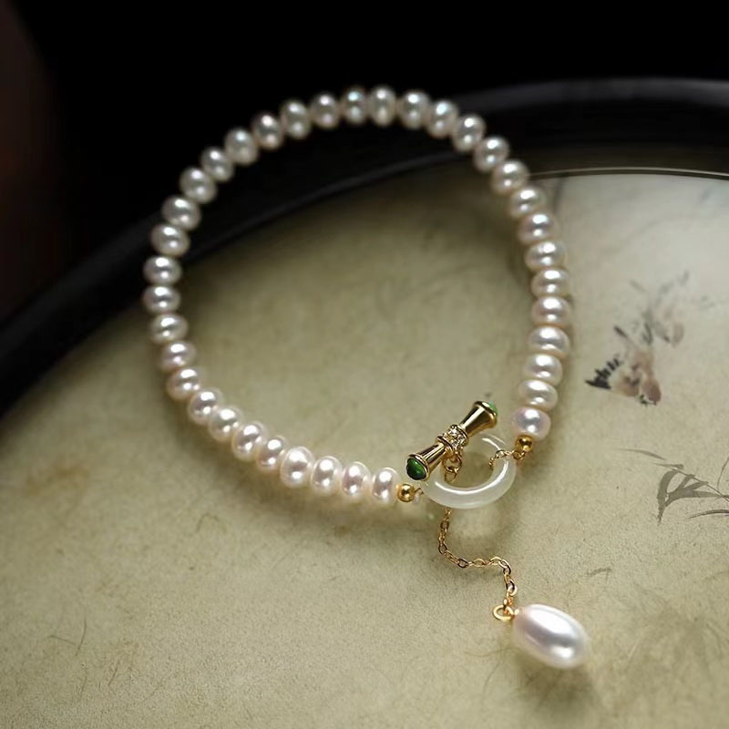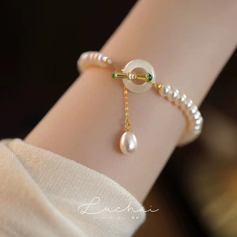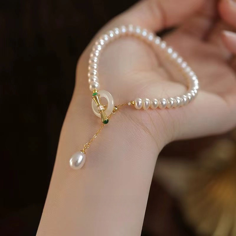 正統和田玉otバックル真珠の手串百合珠純銀ブレスレット女2024新型軽豪華小衆設計
