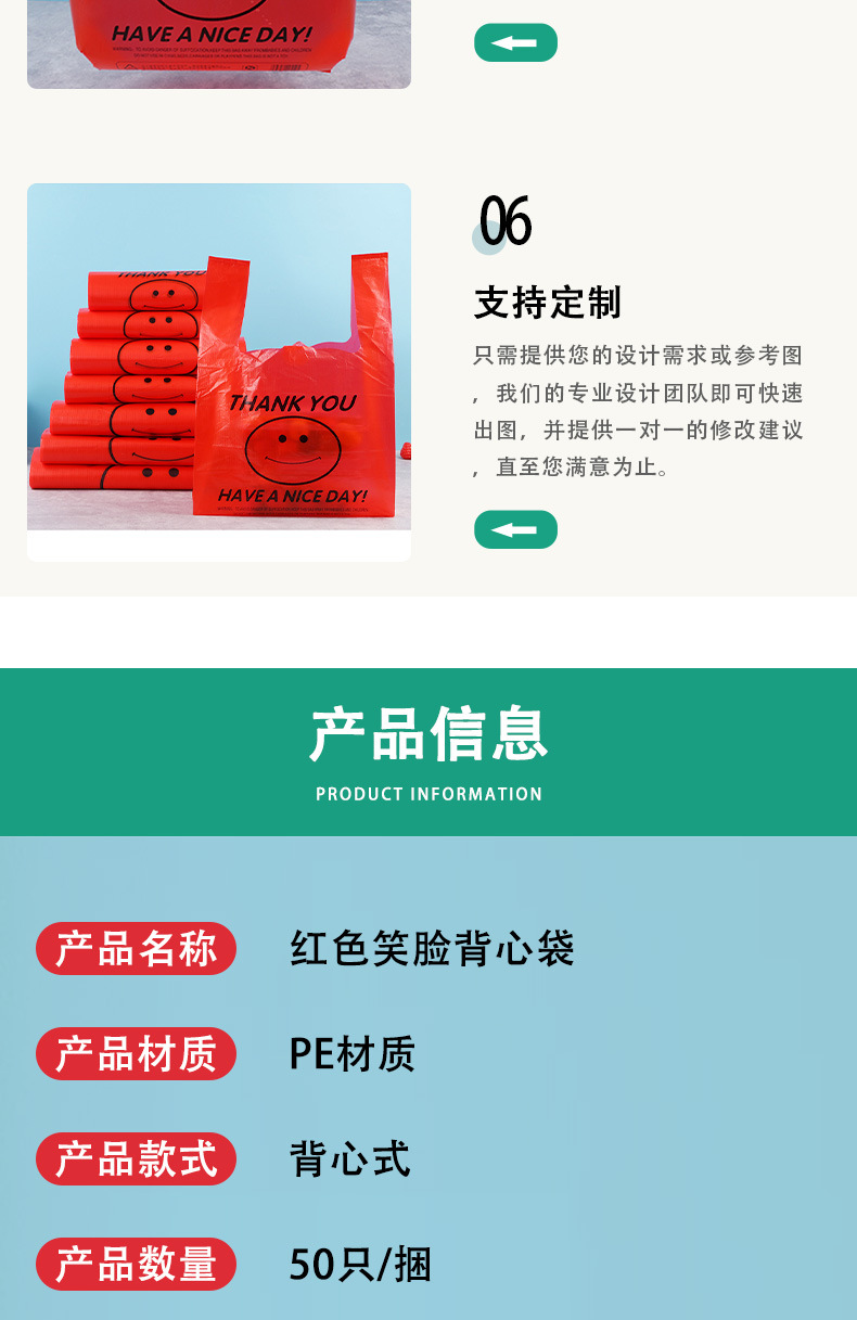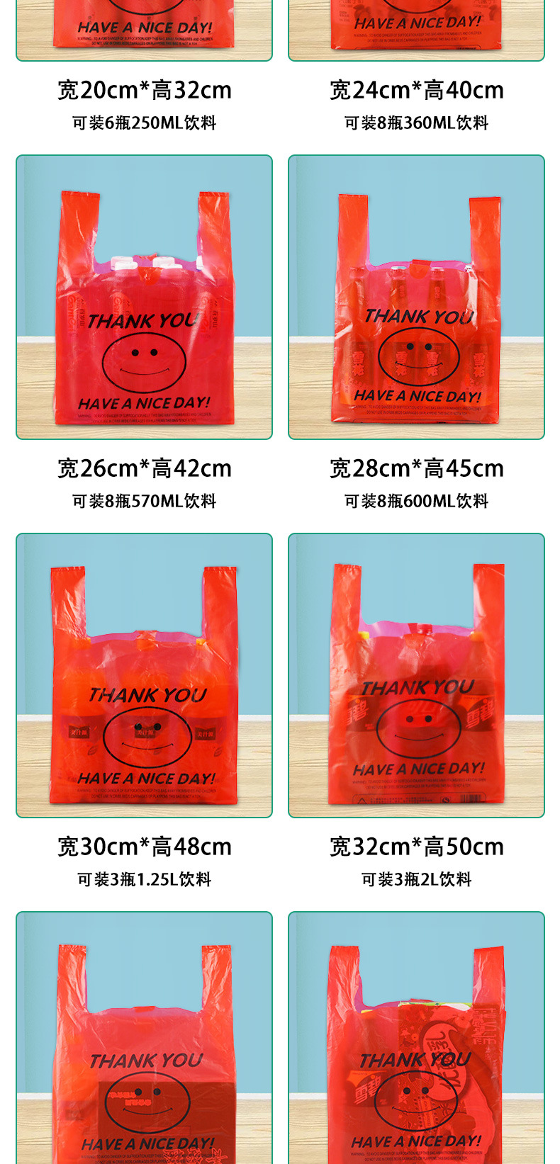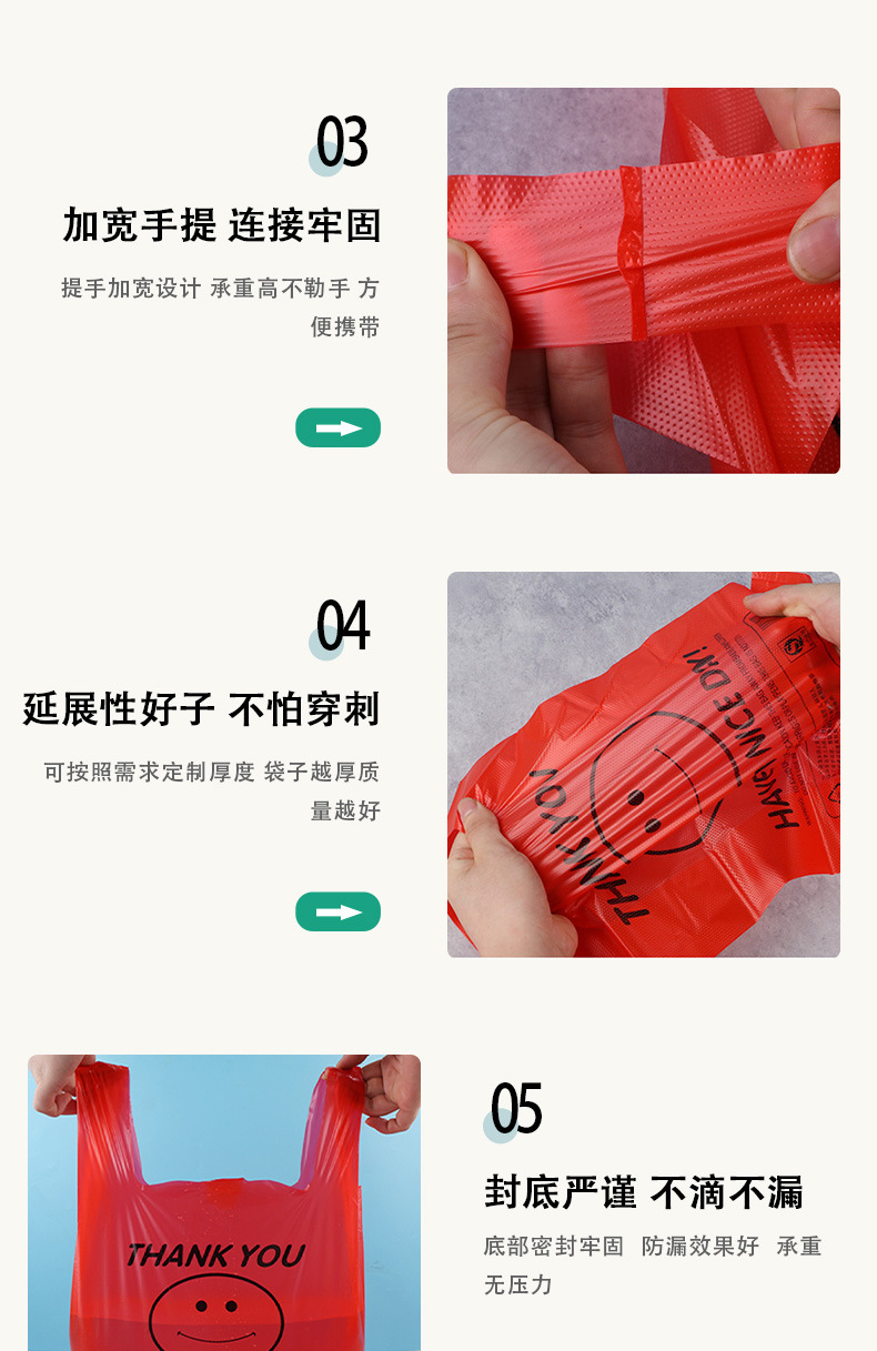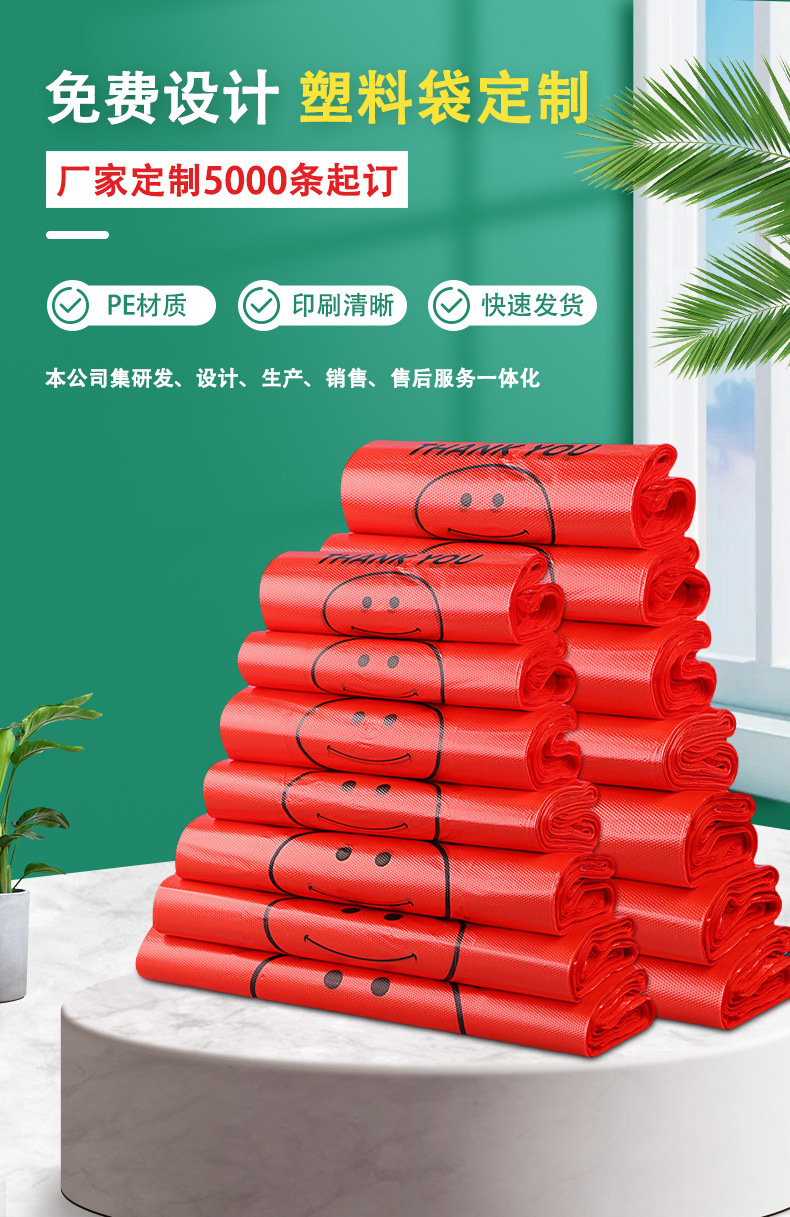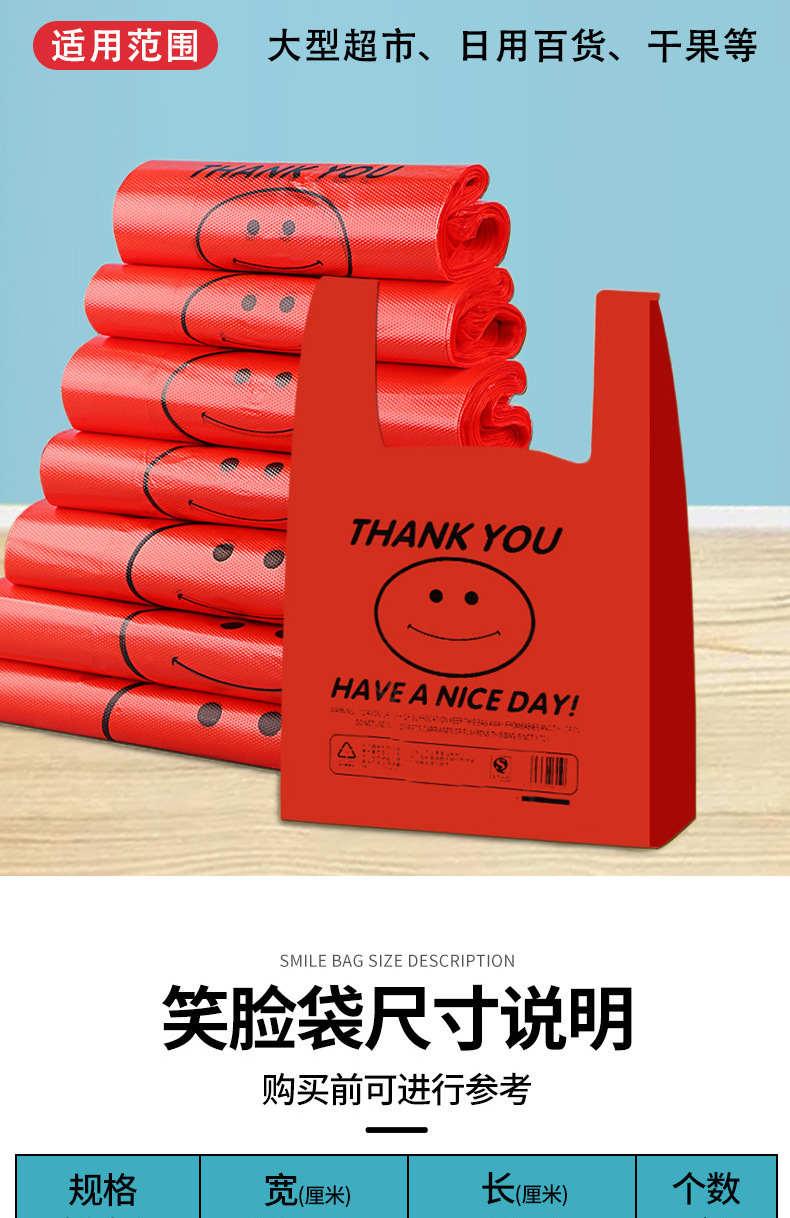 特厚ビニール袋赤スーパーレジ袋食品包装袋手提げベストバッグ笑顔便利袋卸売り