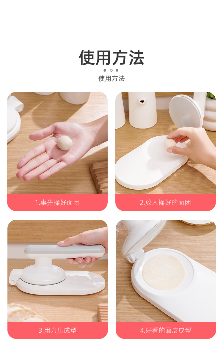 餃子の皮の神器を押して、家庭用餃子の型を作って皮をつぶします。