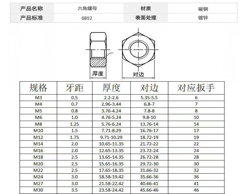 GB52 鉄亜鉛メッキ4.8級薄六角ナット厚外六角ネジキャップm3m4m5m6m8m10m12ナット
