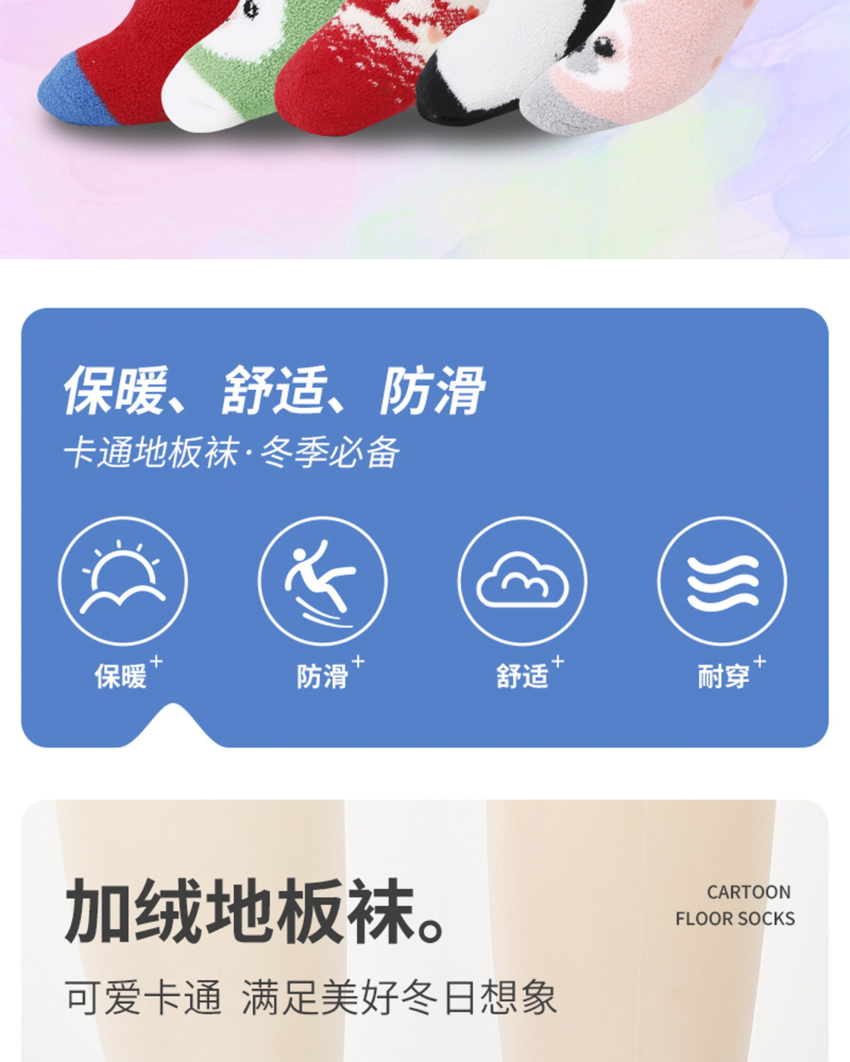 地板袜子女冬季保暖加厚防滑月子袜卡通动物抗寒毛圈睡眠袜