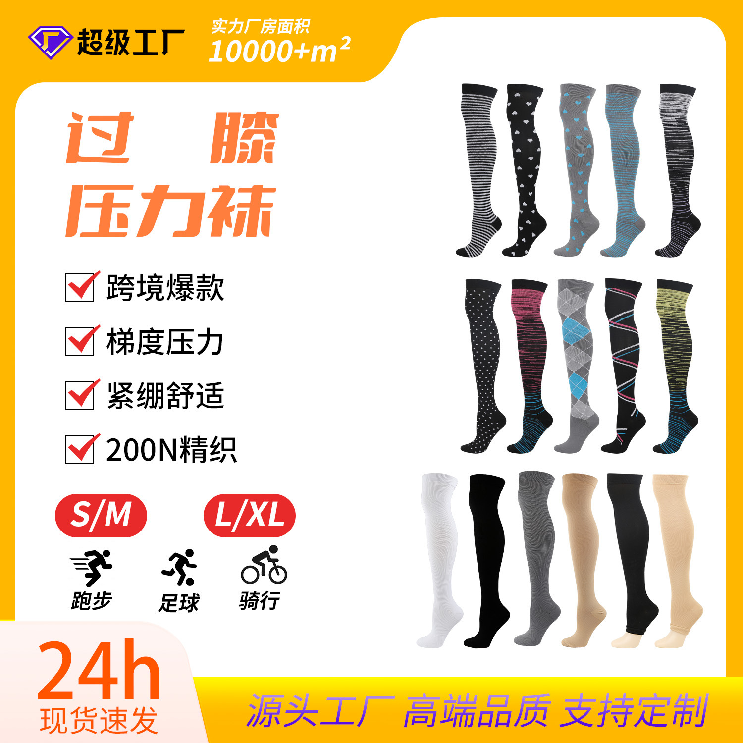 アマゾンの新型クロスボーダーアウトドア弾性靴下膝を越えた圧力靴下スポーツランニング