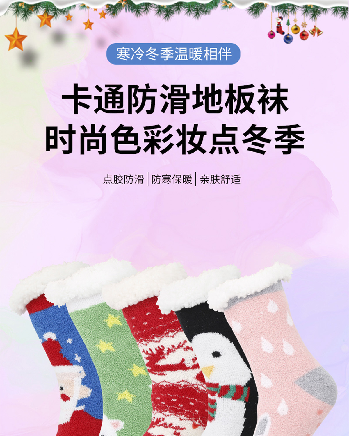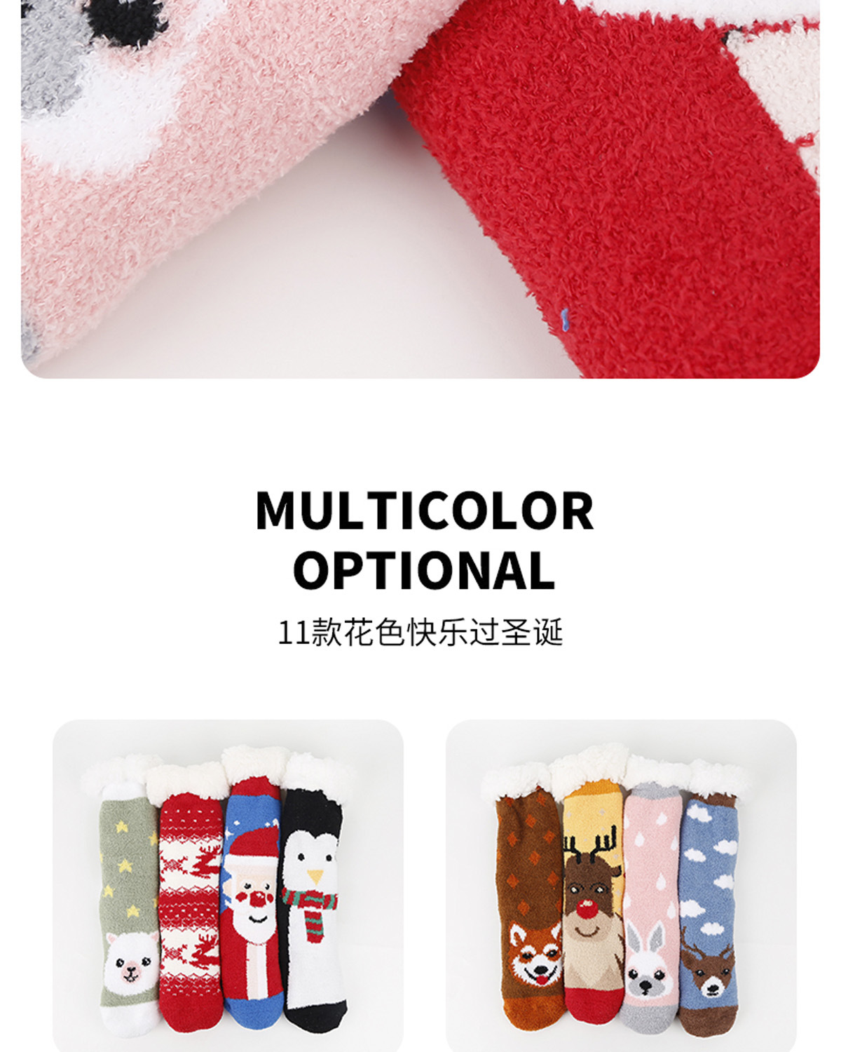 现货外贸圣诞老人麋鹿雪人圣诞树羊羔绒加厚防滑地板袜