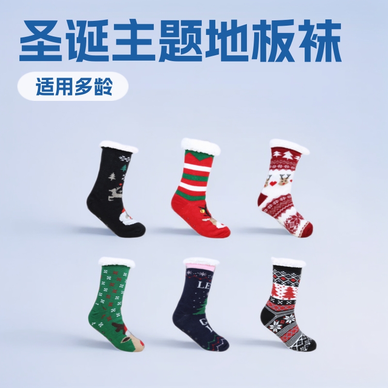 跨境圣诞袜子女地板袜成人冬季加绒雪地袜睡眠袜地毯袜拖鞋袜批发