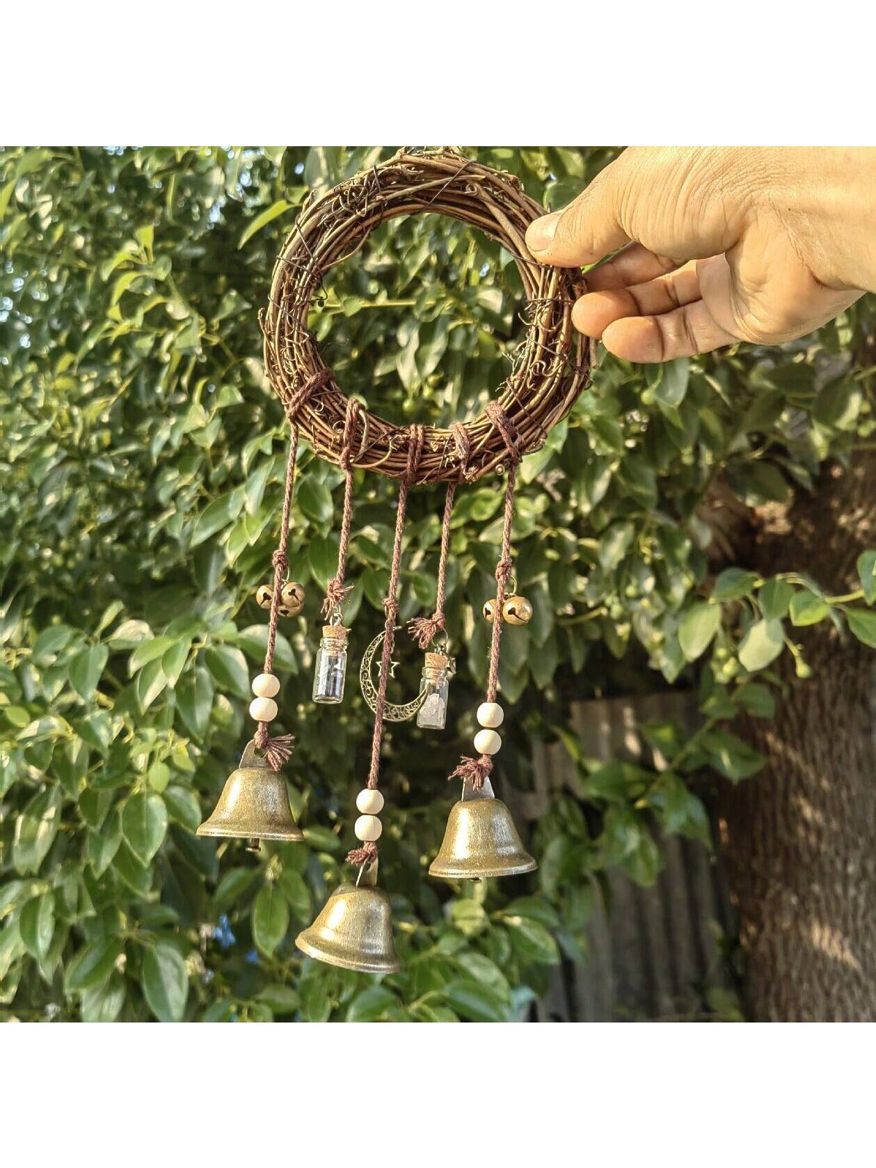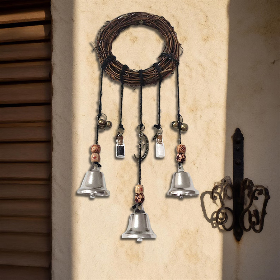 TemuShein クロスボーダー保護ベル 魔女ドアハンドルベル 庭園装飾