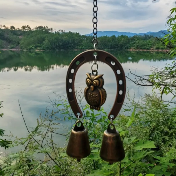 1件幸运马蹄铁风铃配猫头鹰蝴蝶装饰链条款,适合家居和花园装饰
