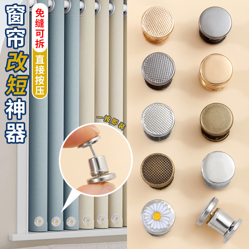 窗帘改短神器免缝可拆卸底部太长了变短调节纽扣钉扣固定挽边扣子