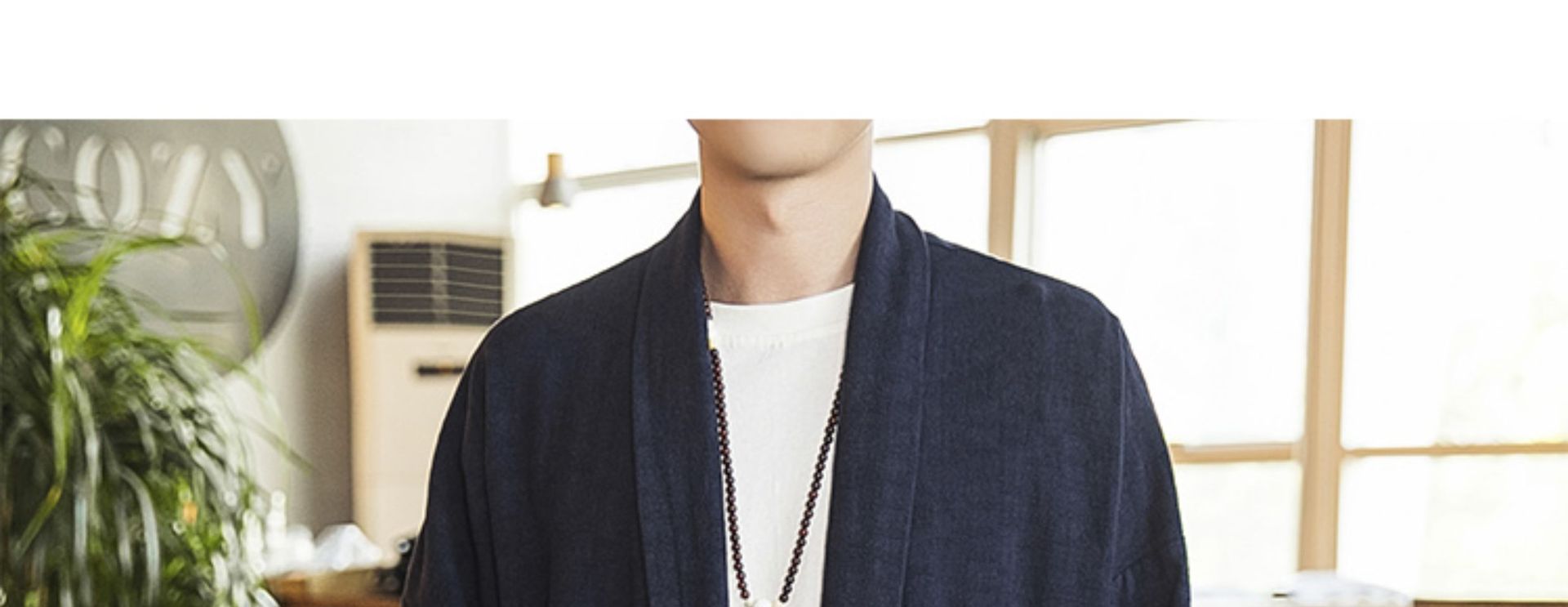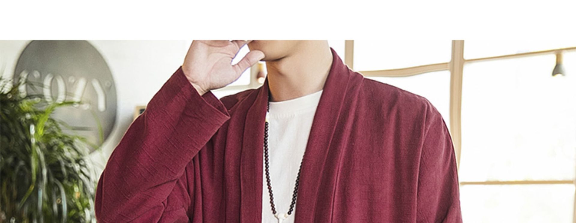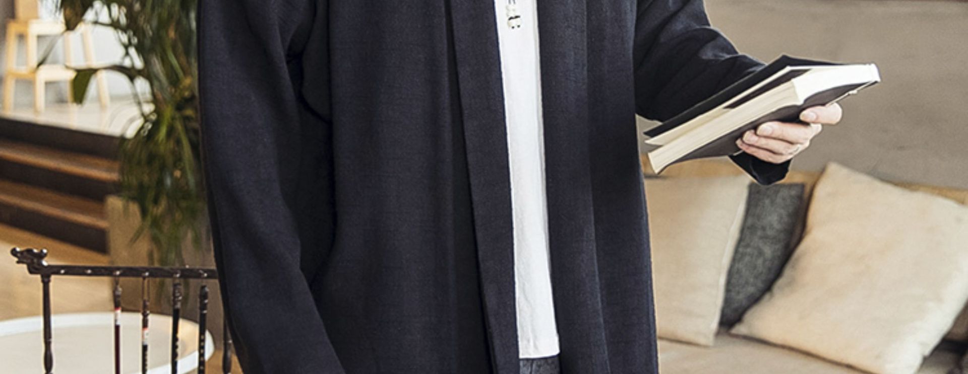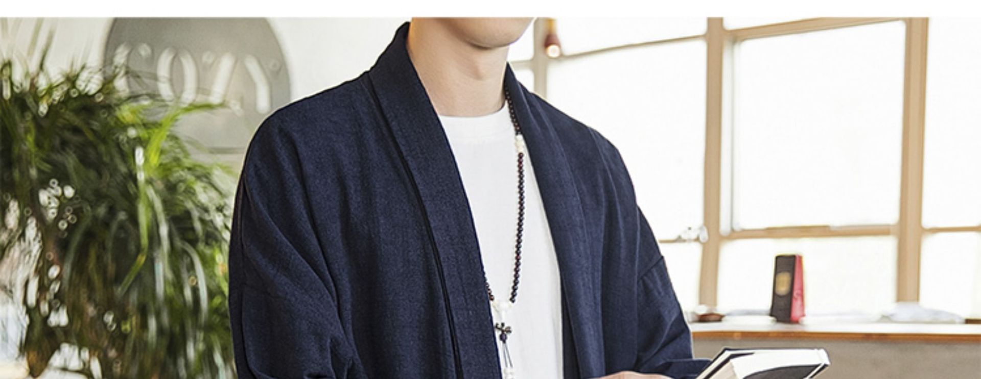2022中国風秋モデル無ボタン風衣純色落肩袖カーディガン長袖亜麻コート漢服男装卸売り