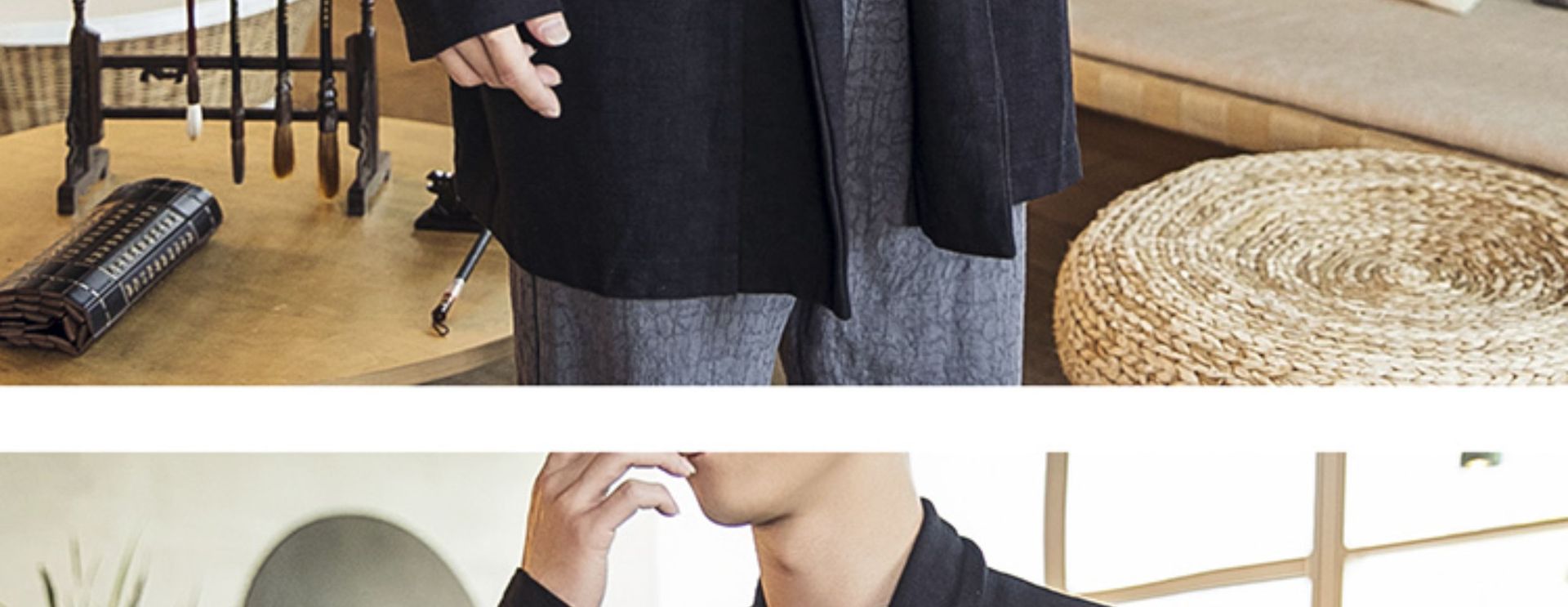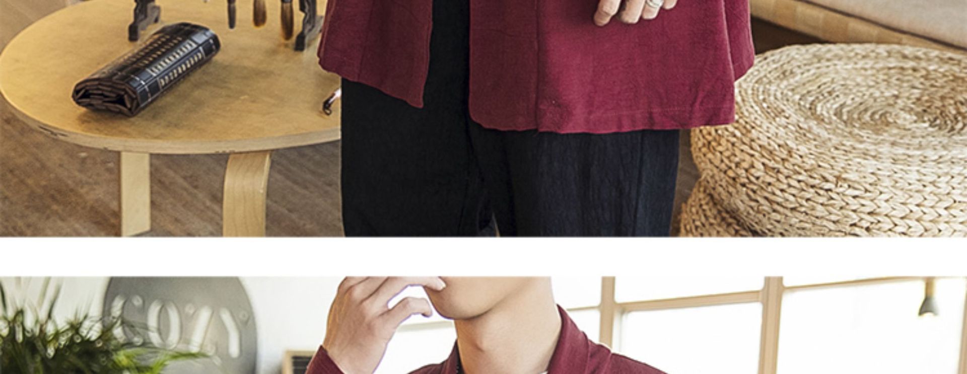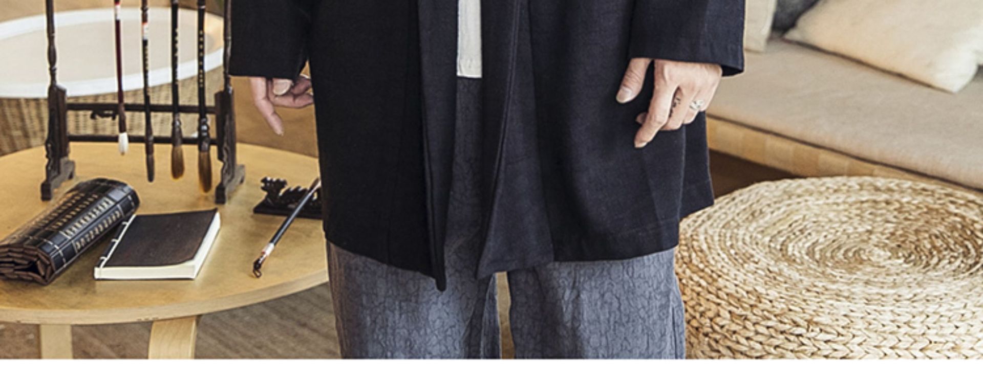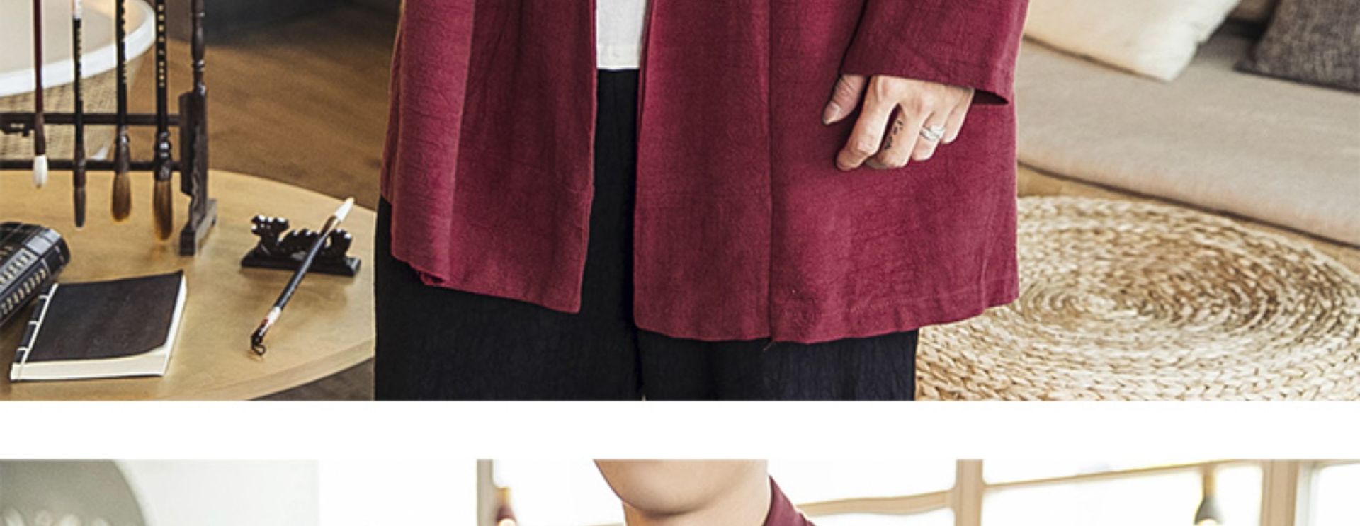 2023秋冬スタイルのメンズ民族風道服綿麻古風カジュアルレトロ国風青年両面マントコート