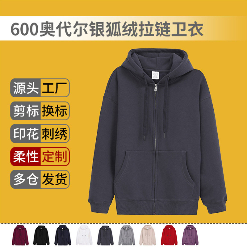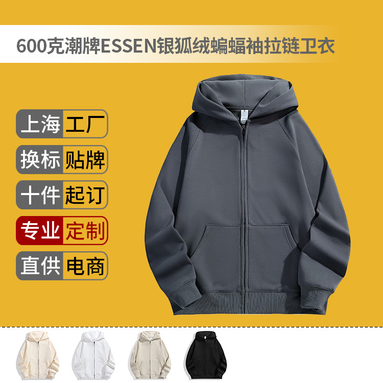600g秋冬ファッションブランドの銀の毛のファスナーの衛衣はカスタマイズして来て図に来て刺繍の字のコウモリの袖の帽子のシャツの純色のカーディガンのコートを印刷します。