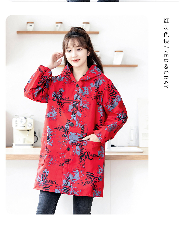 長袖防水エプロン家庭用キッチン料理女性カバー大人ファッション防油ファスナー作業服薄いタイプ