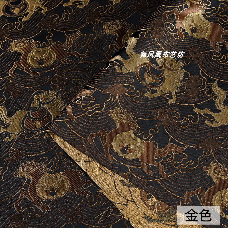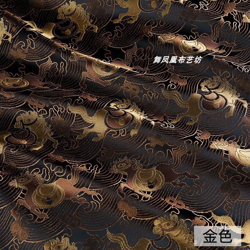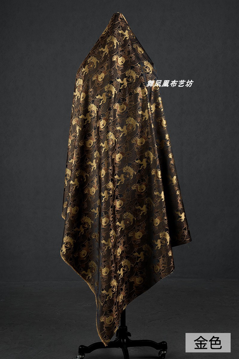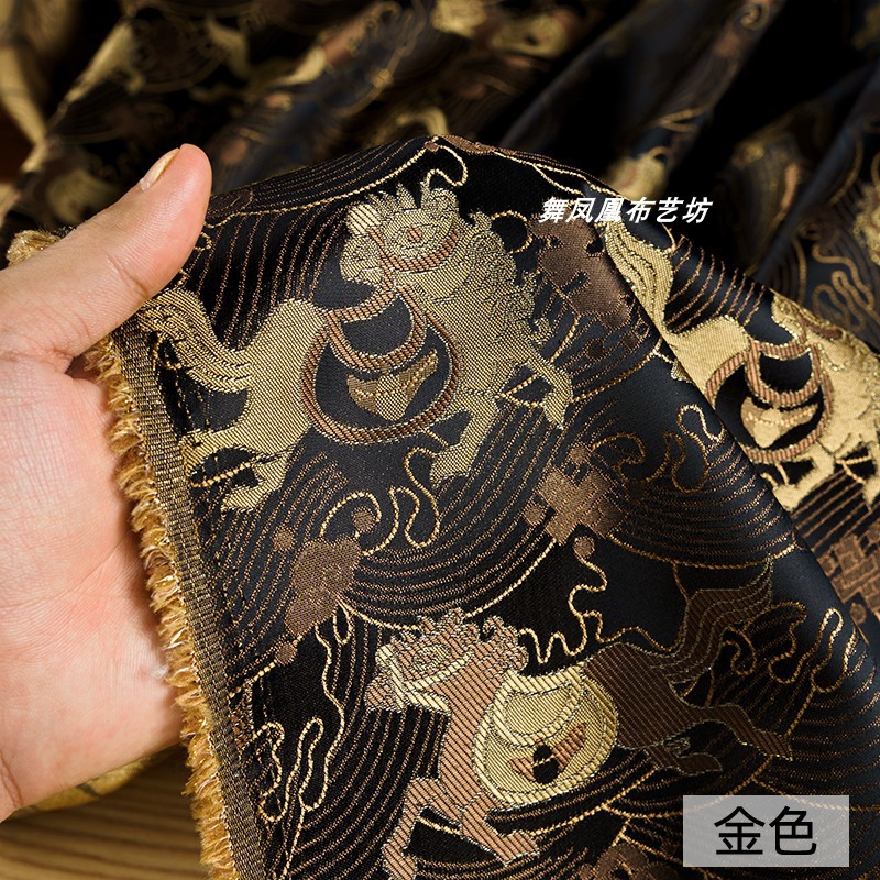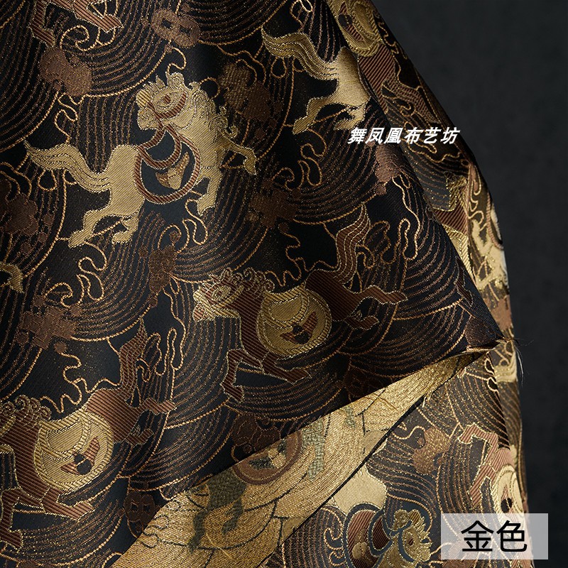 【すぐ金持ち】黒金色織錦織生地金老銭風織金糸新中国風生地