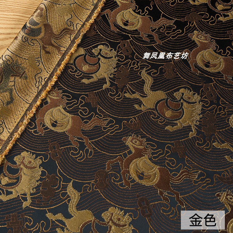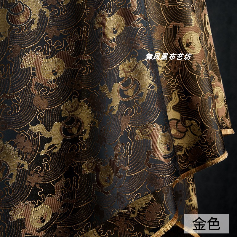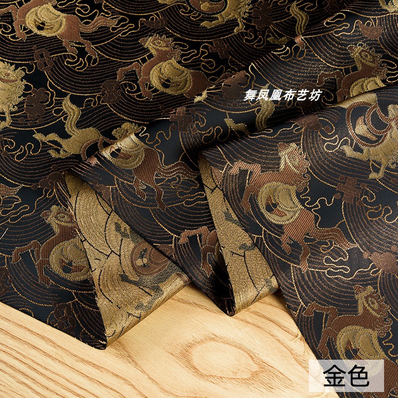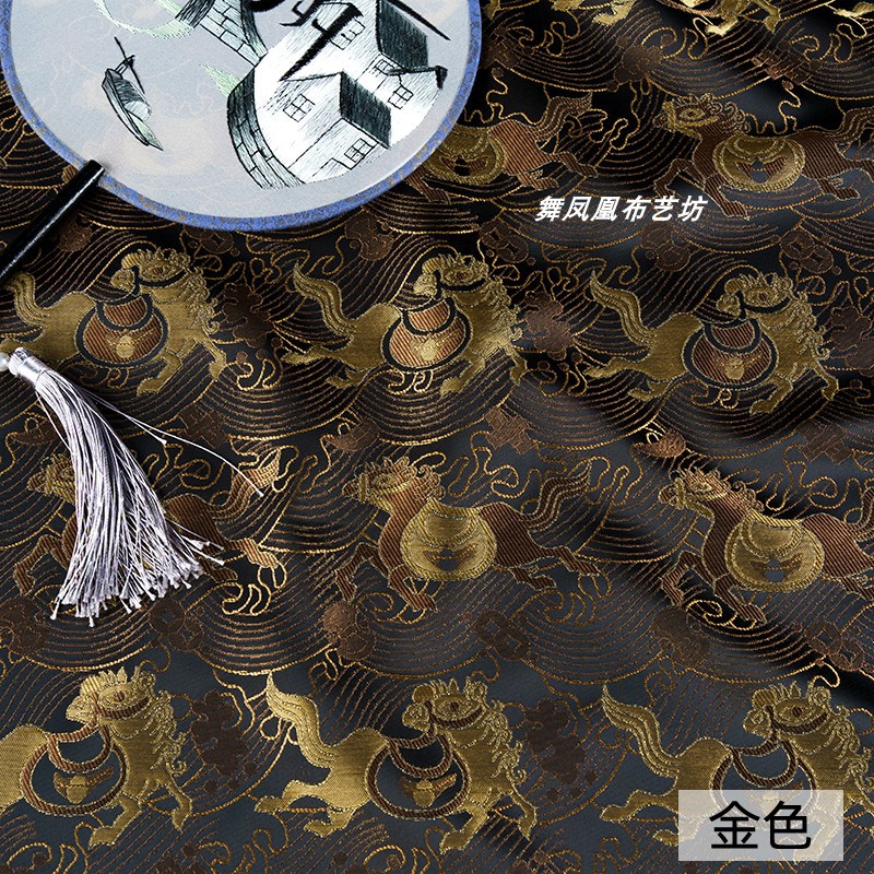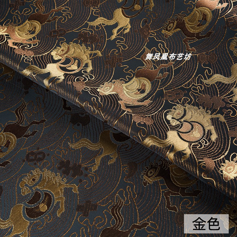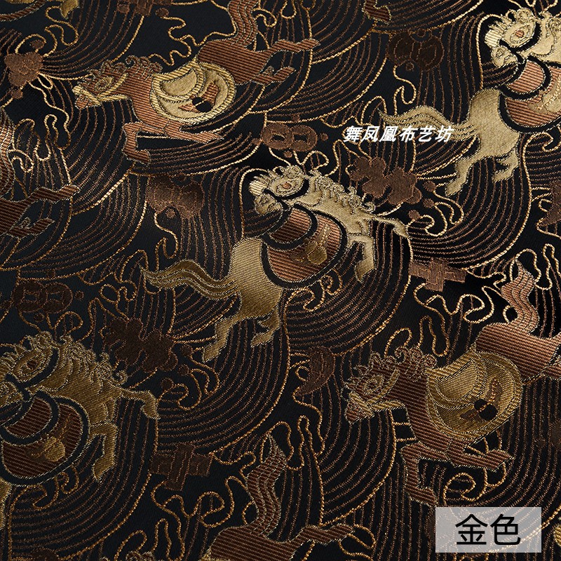 【すぐ金持ち】黒金色織錦織生地金老銭風織金糸新中国風生地