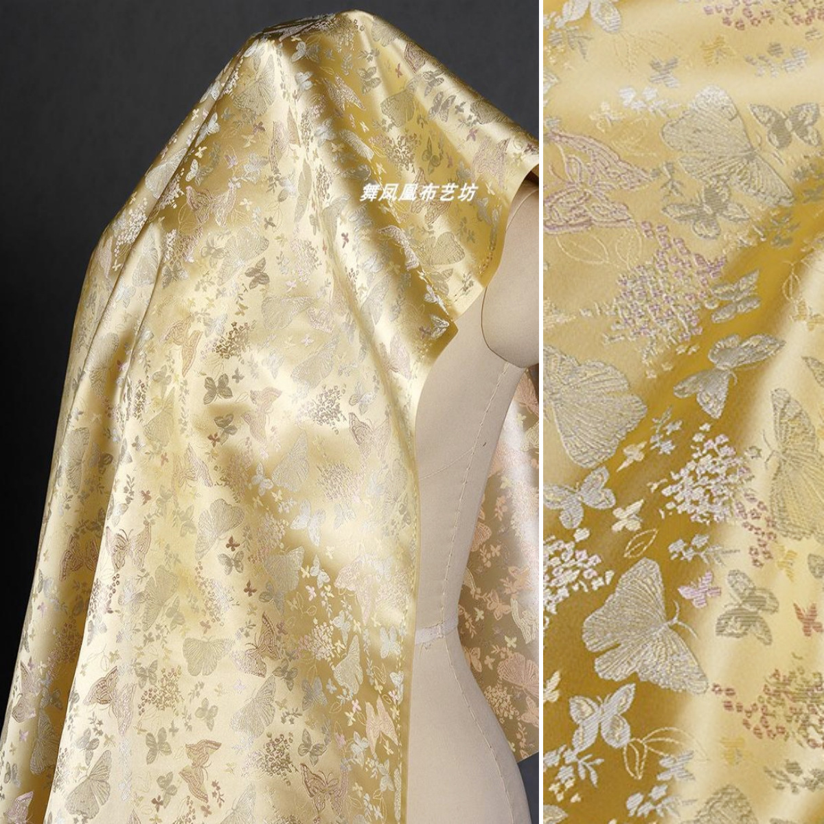 黄色の蝶が舞う錦織ジャカード生地の中国式コート馬甲宋錦糸滑り光沢サテン生地