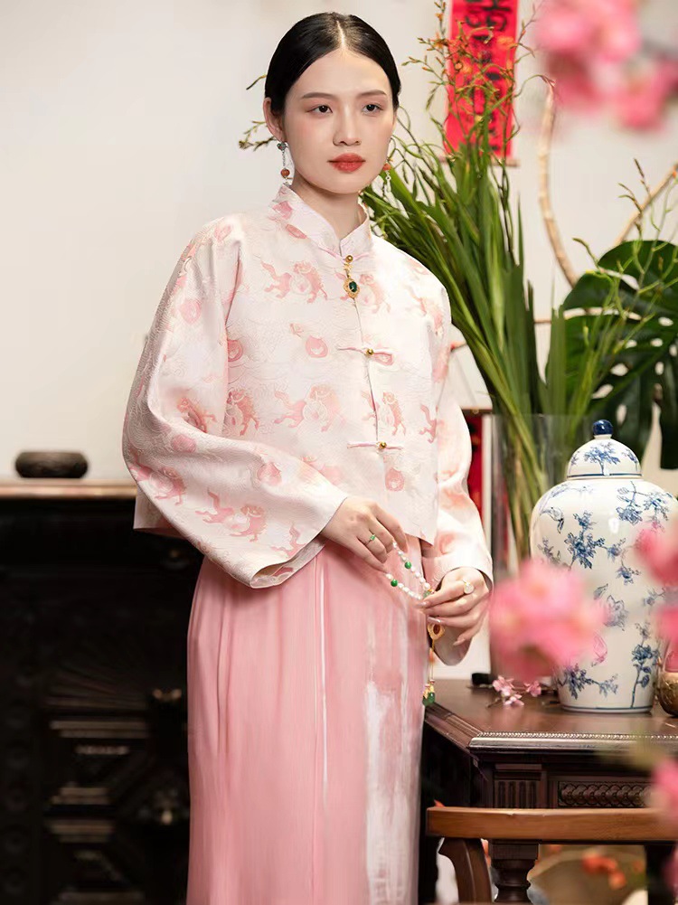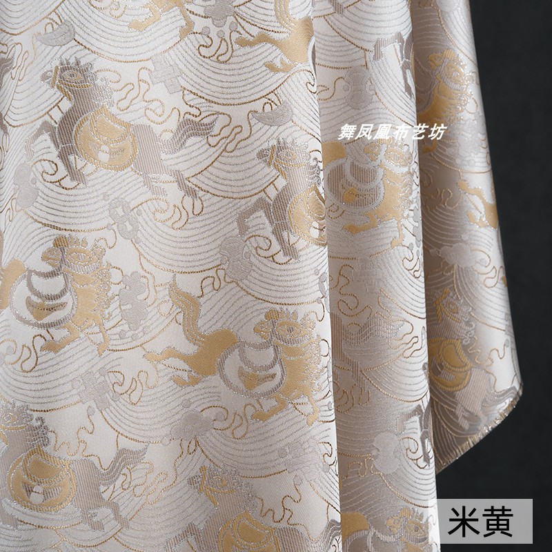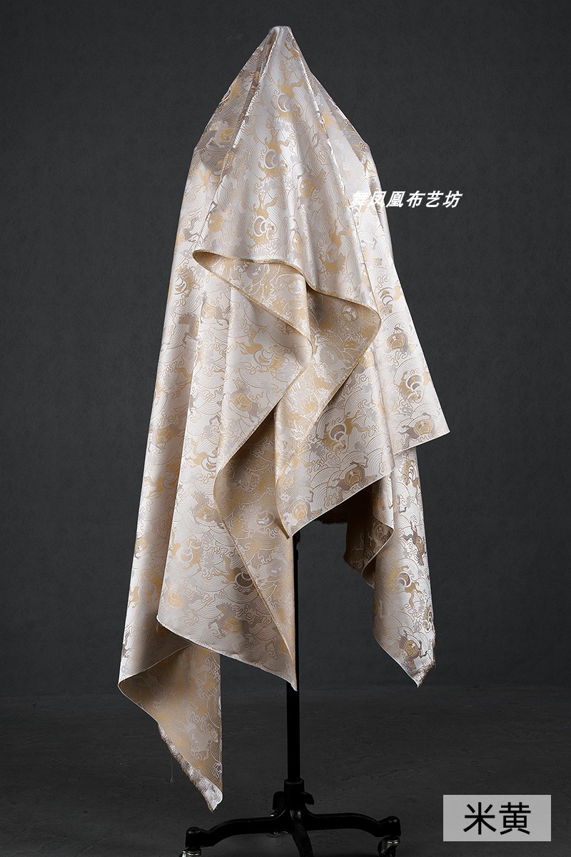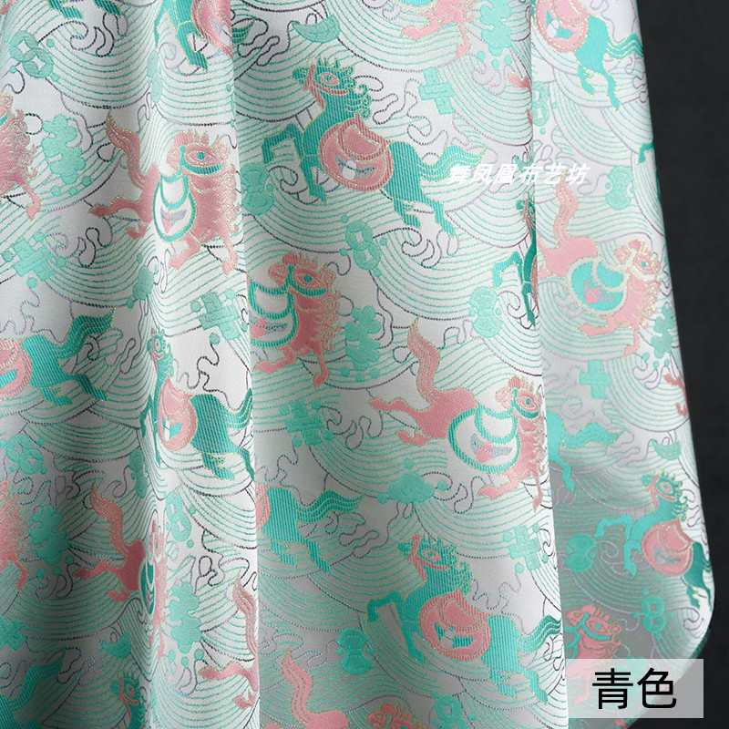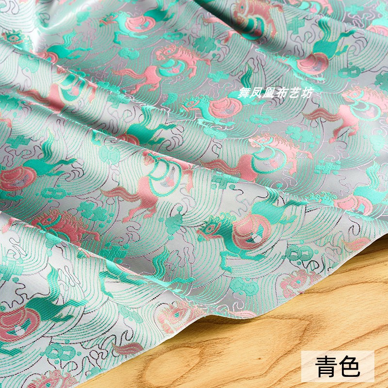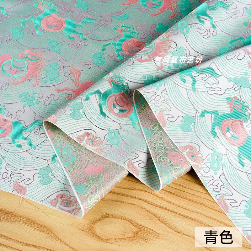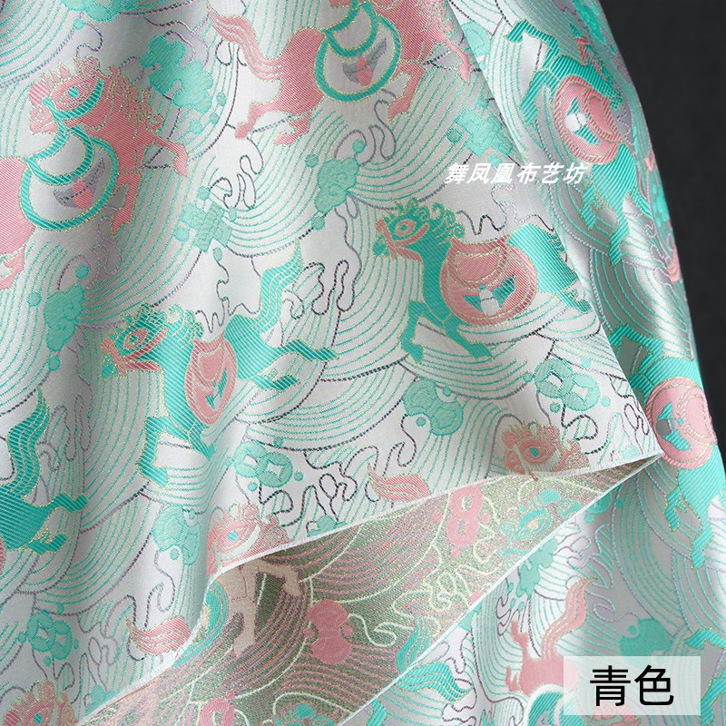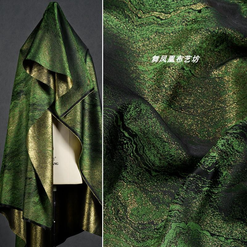 海藻緑金銀河-錦織ジャカード生地中国式チャイナドレススーツ優雅半スカート服布地