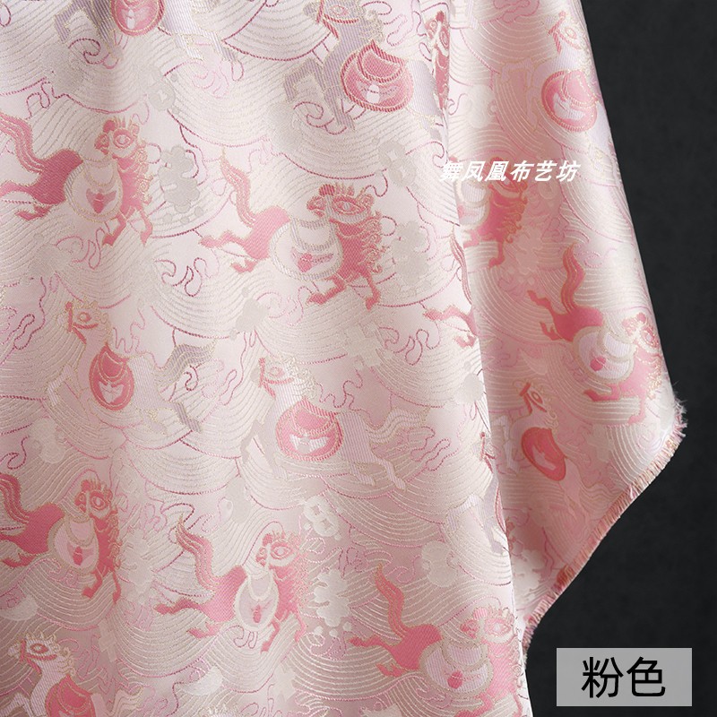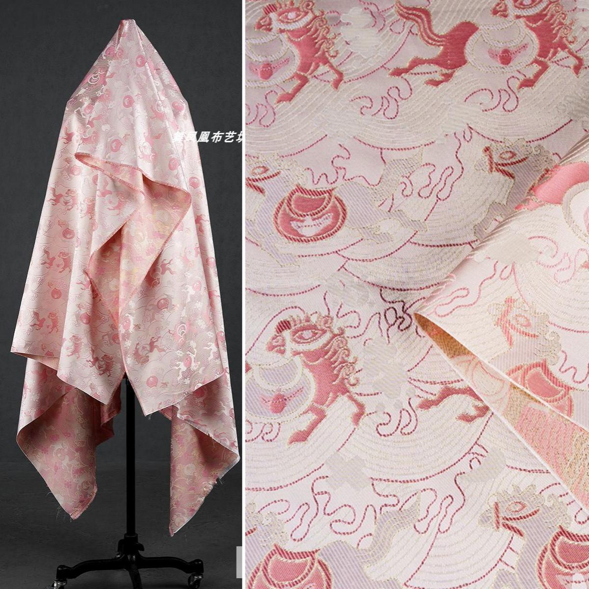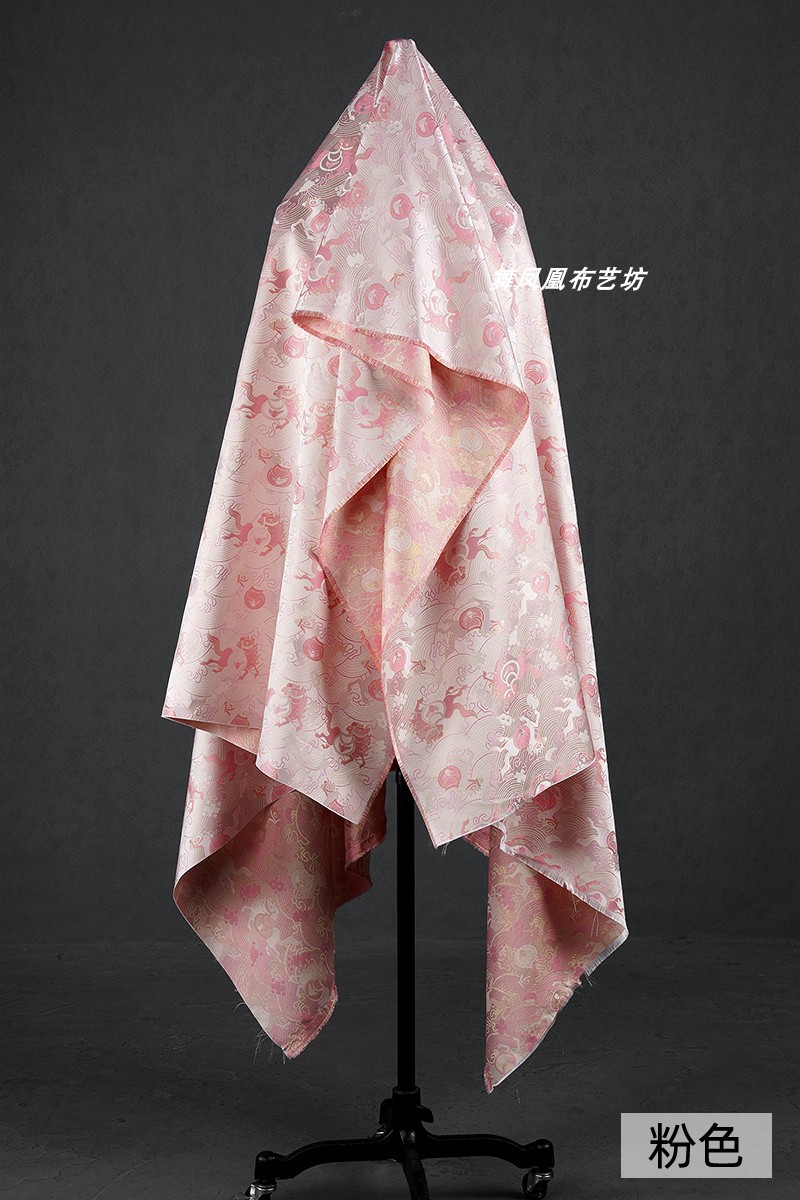 ピンクのヒョウタンの花の羅織の錦織のジャカードの生地の甘い中国式のコートの馬甲の子供服のシルクの滑りの服の布地