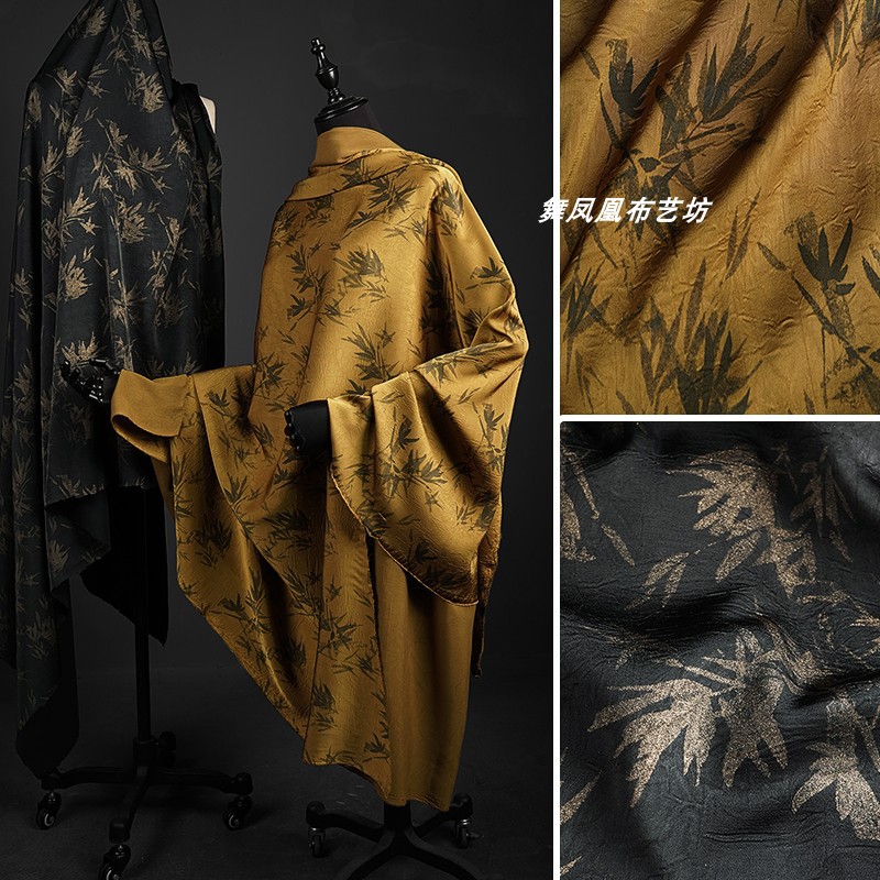 竹は酢酸生地に似せています。中国風の黒い金糸を撒いています。