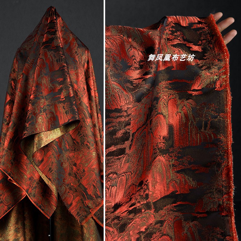 黒赤色山水風景織錦織ジャカード金生地2色復古コート馬甲新中国式生地
