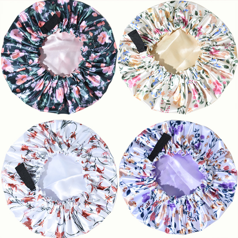 亚马逊双层新款护发高级浴帽时尚防水洗澡浴帽女长发护发焗油浴帽