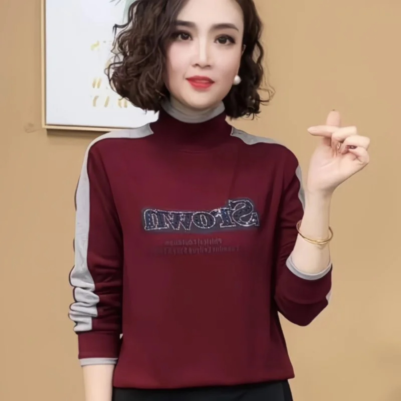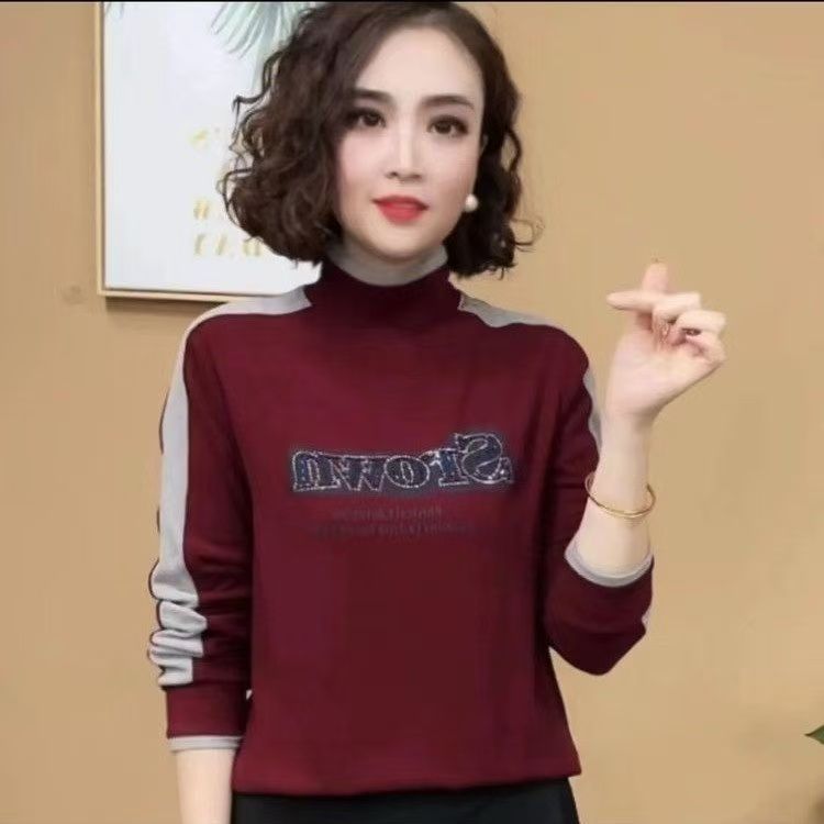 秋冬の新型ファッションの半高襟の純色のドリルの底のシャツの大きいサイズは腹を遮って年齢を減らします。