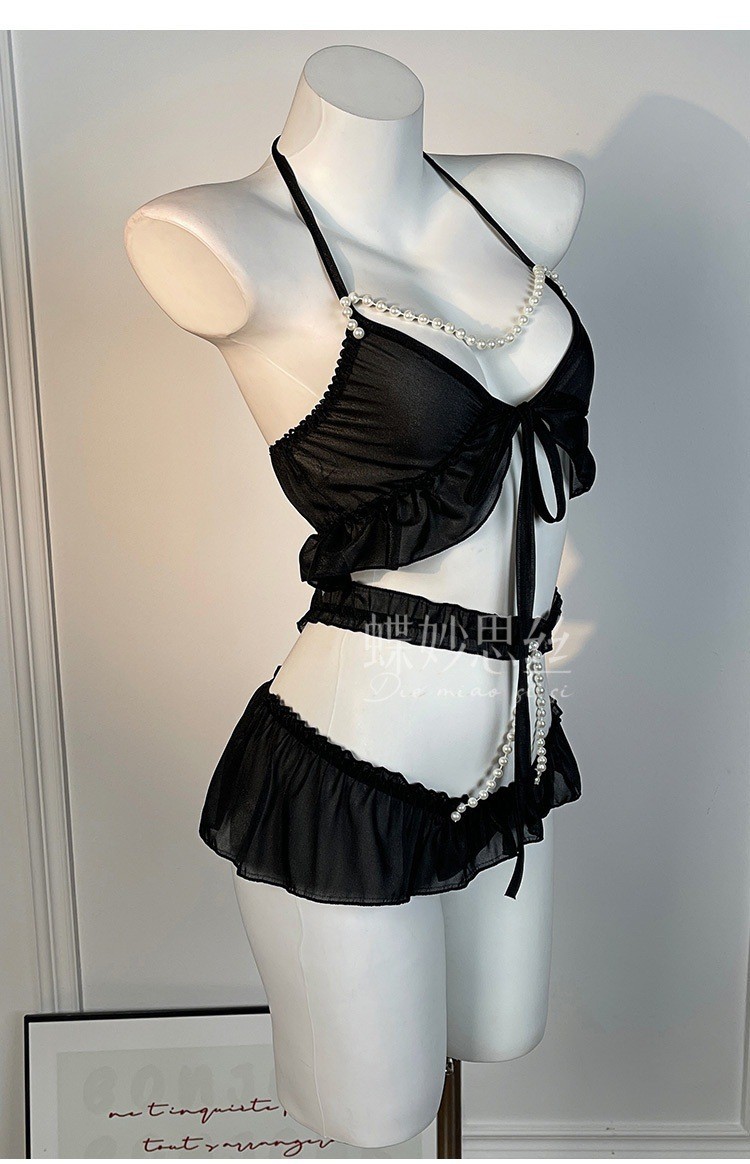 蝶妙思糸下着のセクシーな胸の真珠は首のメイドを掛けます。