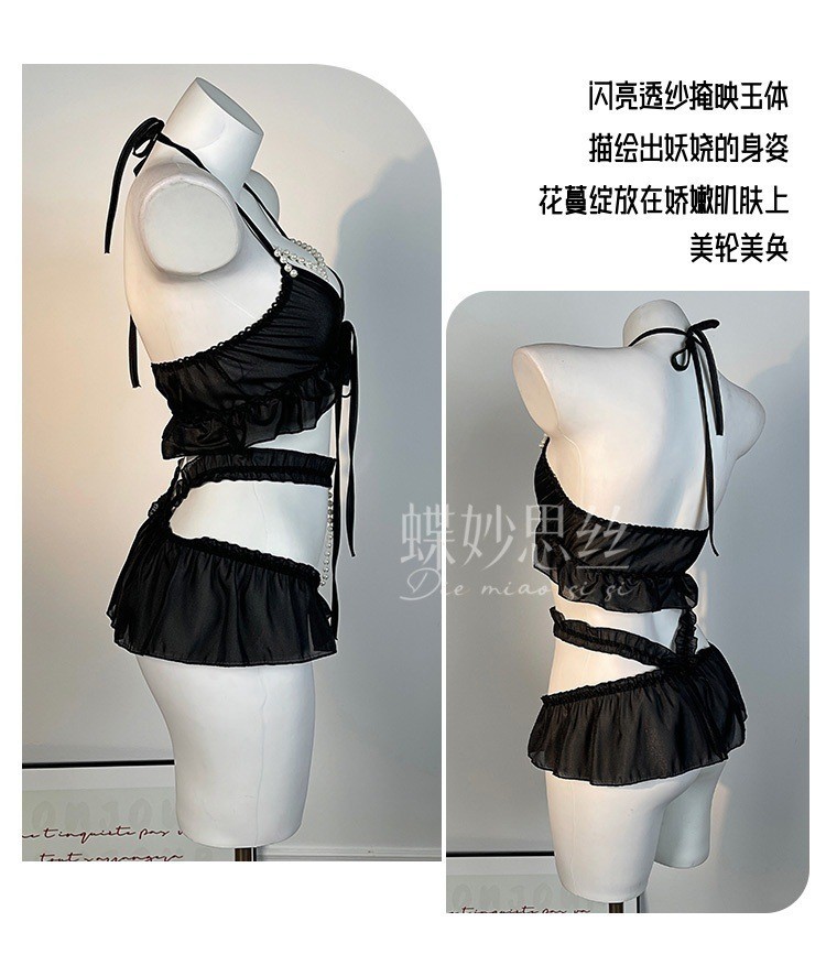 蝶妙思糸風情セクシー網糸透視低胸露背ストラップ連体寝スカート激情誘惑a 13