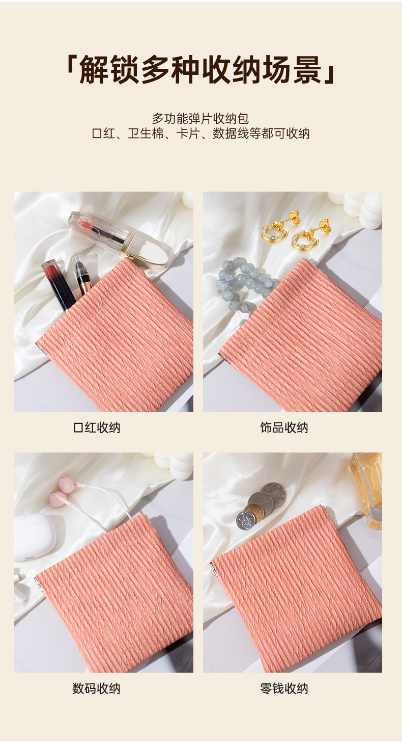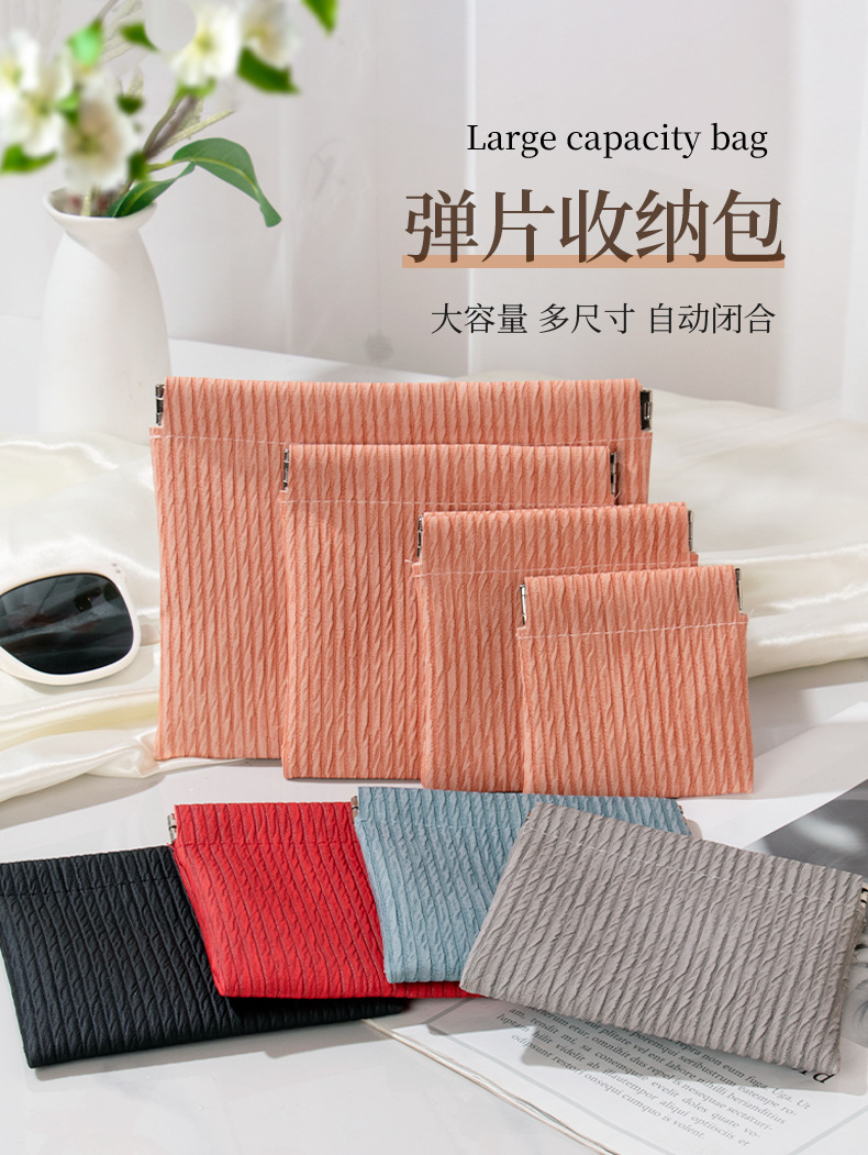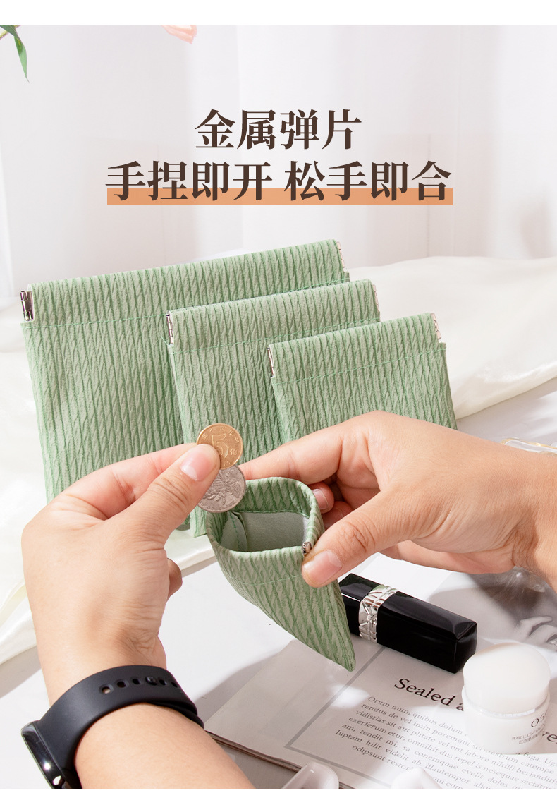 スプリングプレート自動閉鎖収納袋収納バッグ携帯用小銭袋携帯口紅化粧バッグデータライン収納