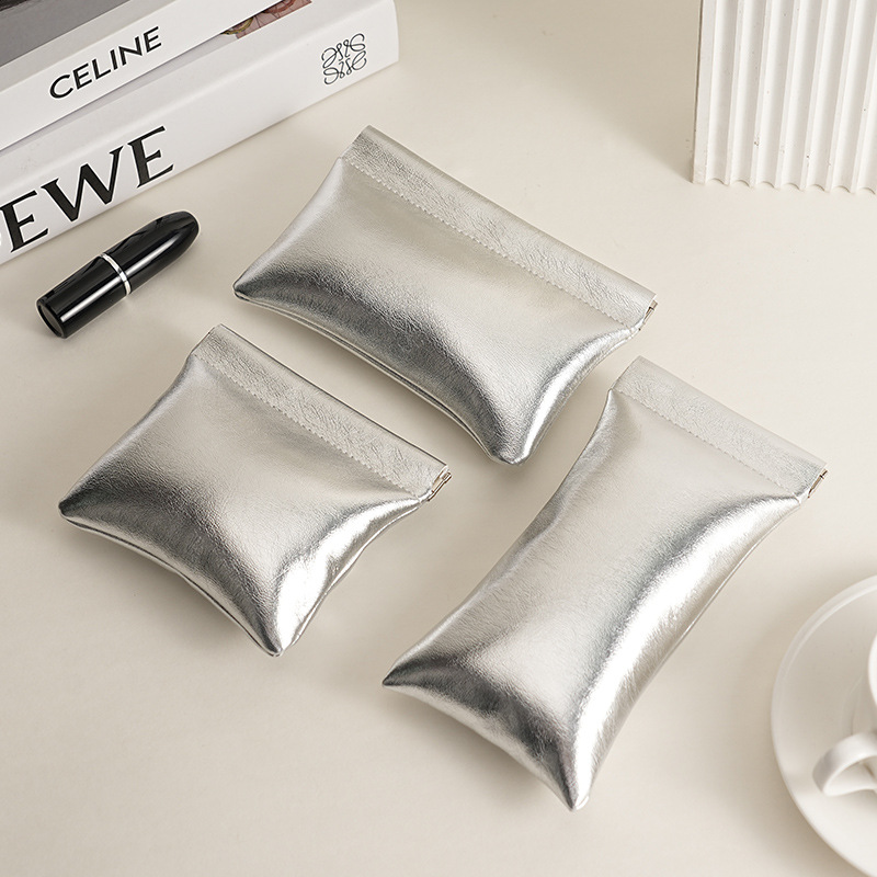 スプリングシート収納バッグ自動閉鎖有線イヤホン収納袋PU小銭入れミニ携帯口紅化粧バッグ
