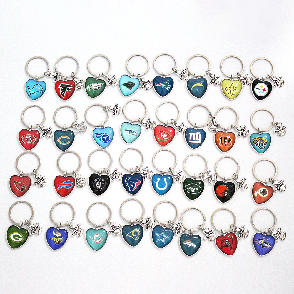 卸売スポット 25 ミリメートルピーチハート NFL アメリカンフットボールチームロゴイーグルタイムジェムストーンキーホルダー