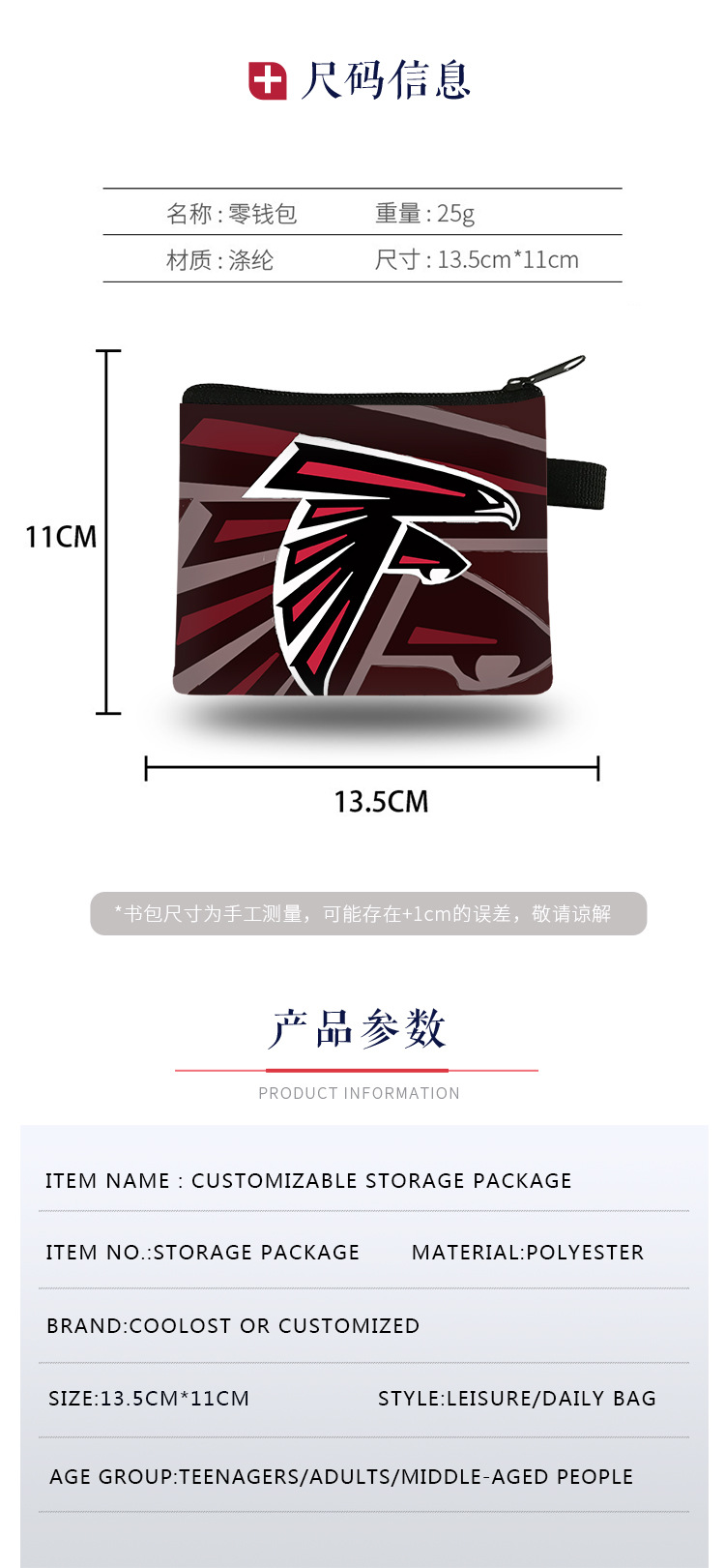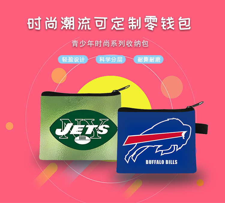 越境アマゾンで人気のNFLチームロゴ入りミニ財布、学生用収納バッグ