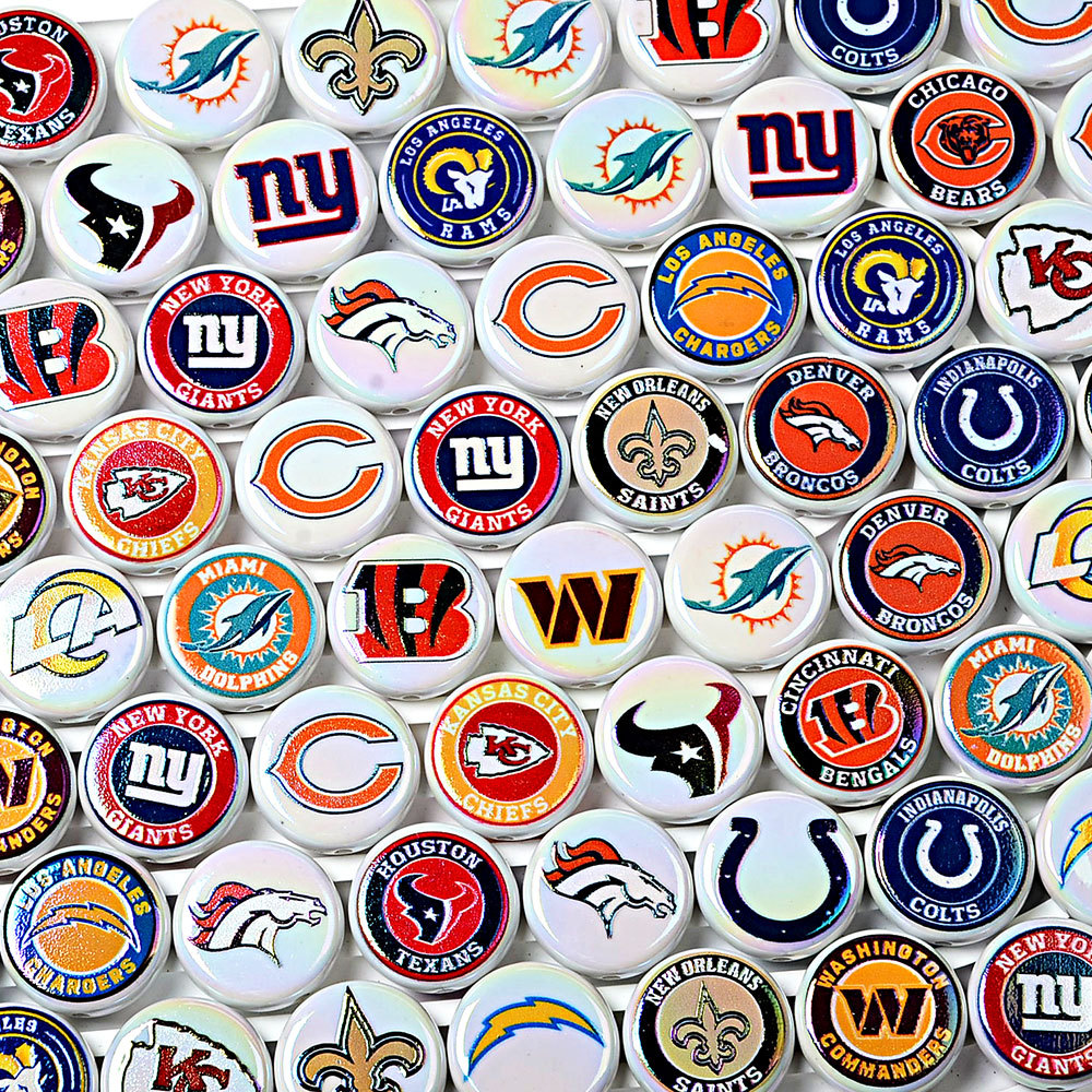 跨境24mmNFL橄榄球队32亚克力双面印花散珠珠子DIY手链圆饼串珠