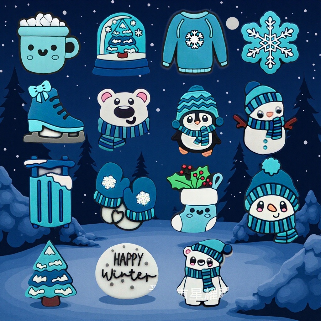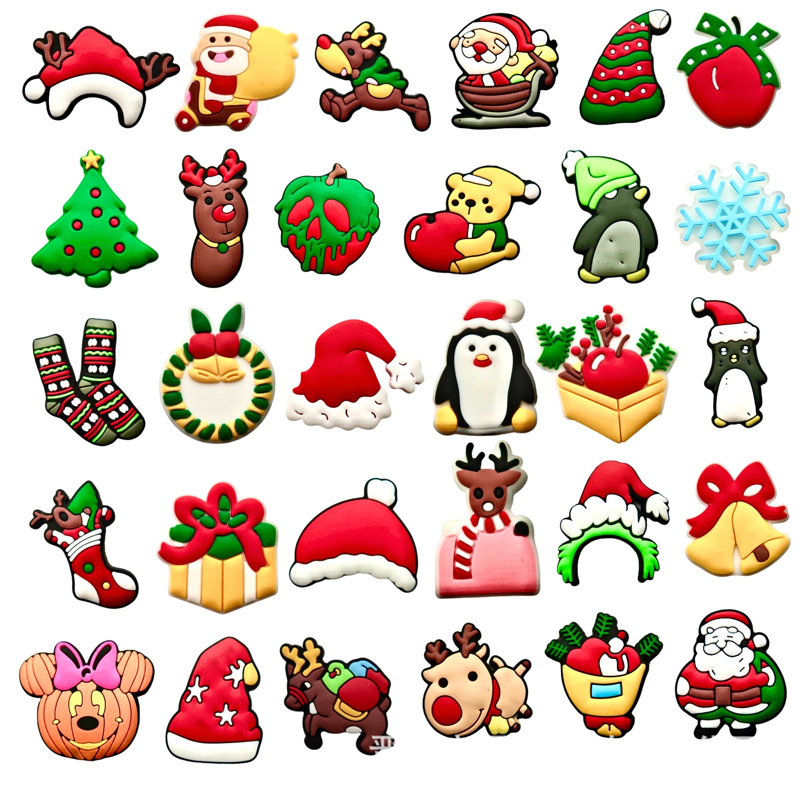 クリスマスをテーマにした穴あき靴用シューバックルDIYアクセサリー、漫画風で可愛い取り外し可能な穴あき靴用シューバックルデコレーション
