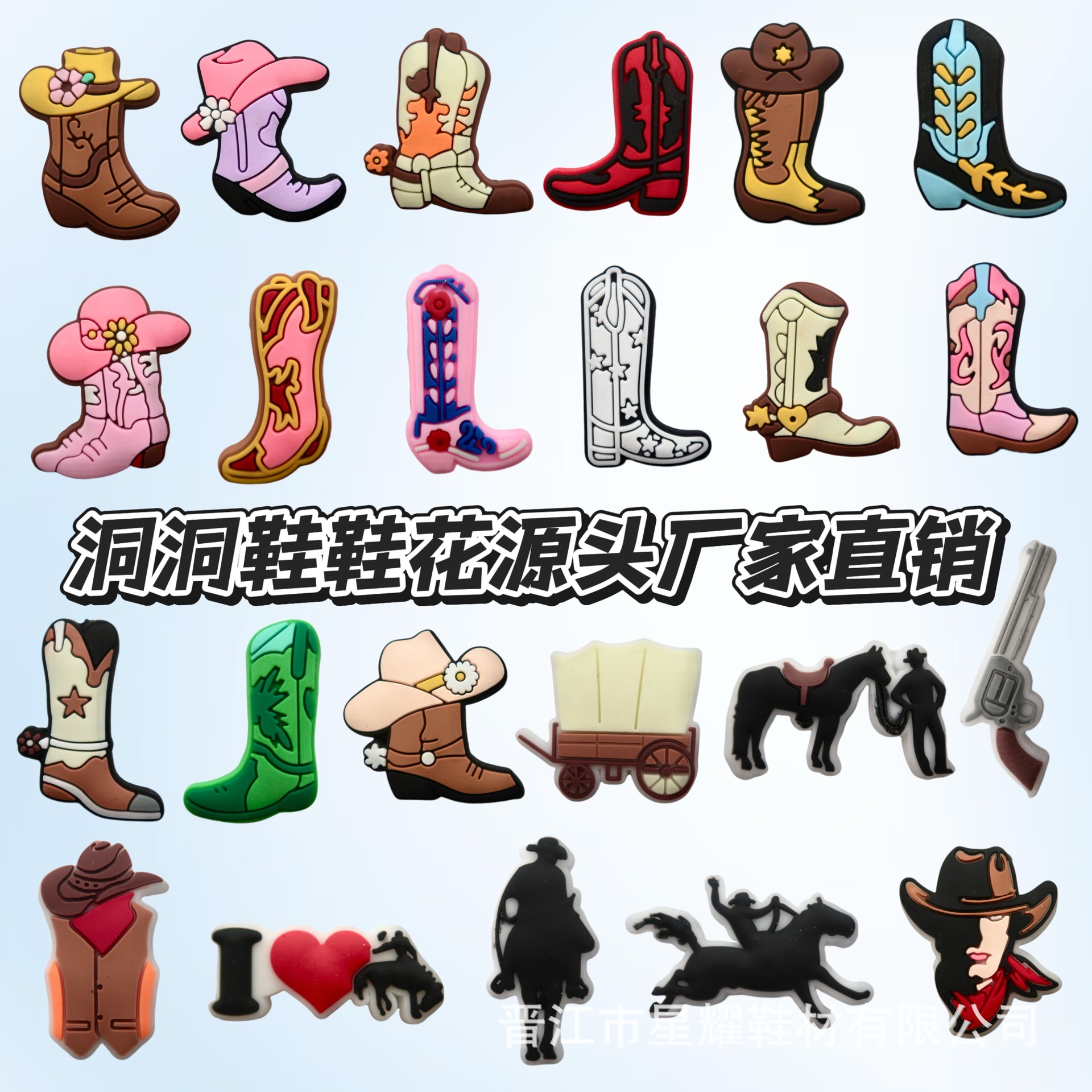 新款牛仔靴子主题洞洞鞋鞋花鞋扣PVC软胶鞋配件装饰扣现货批发