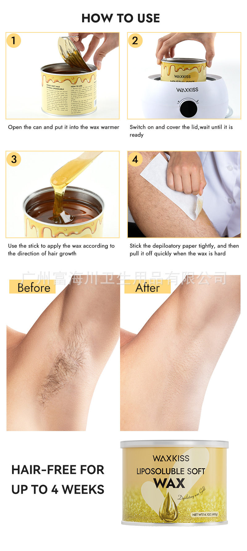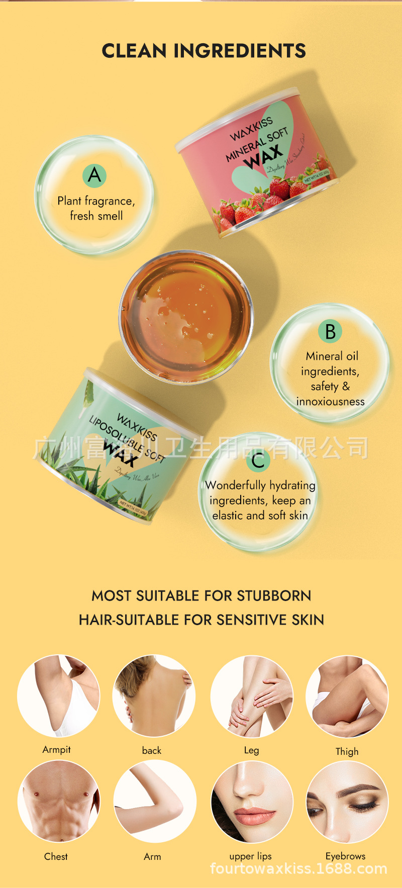 蜜蝋脱毛ソフトワックス全身ユニバーサルビキニ脱毛シュガーワックス天然シュガーカラー配合脱毛ワックスWAXKISS