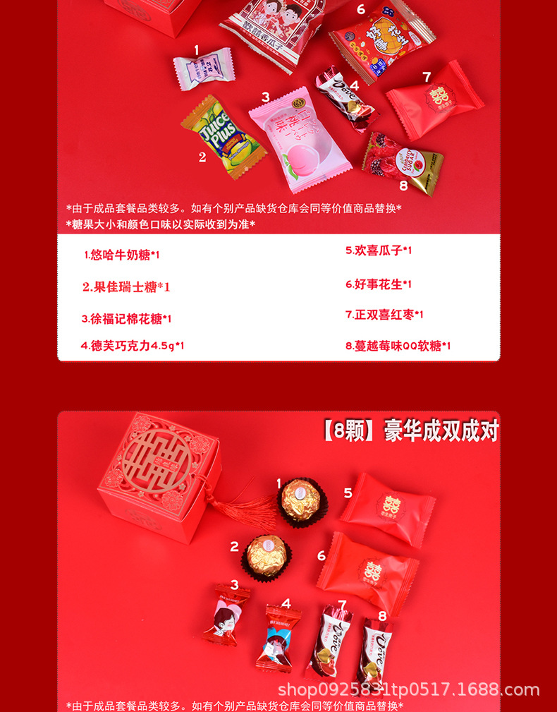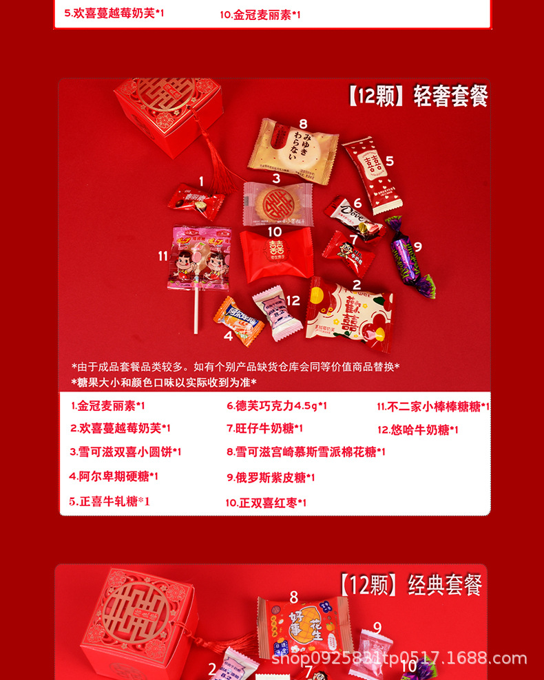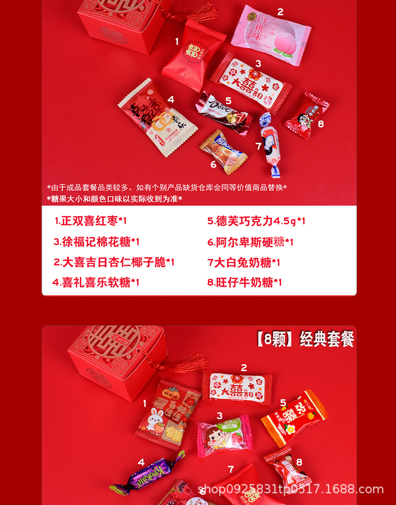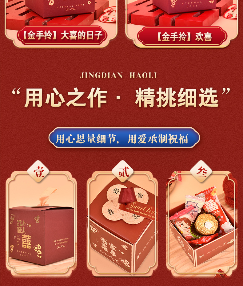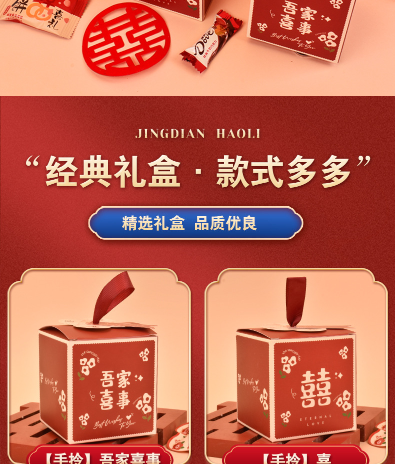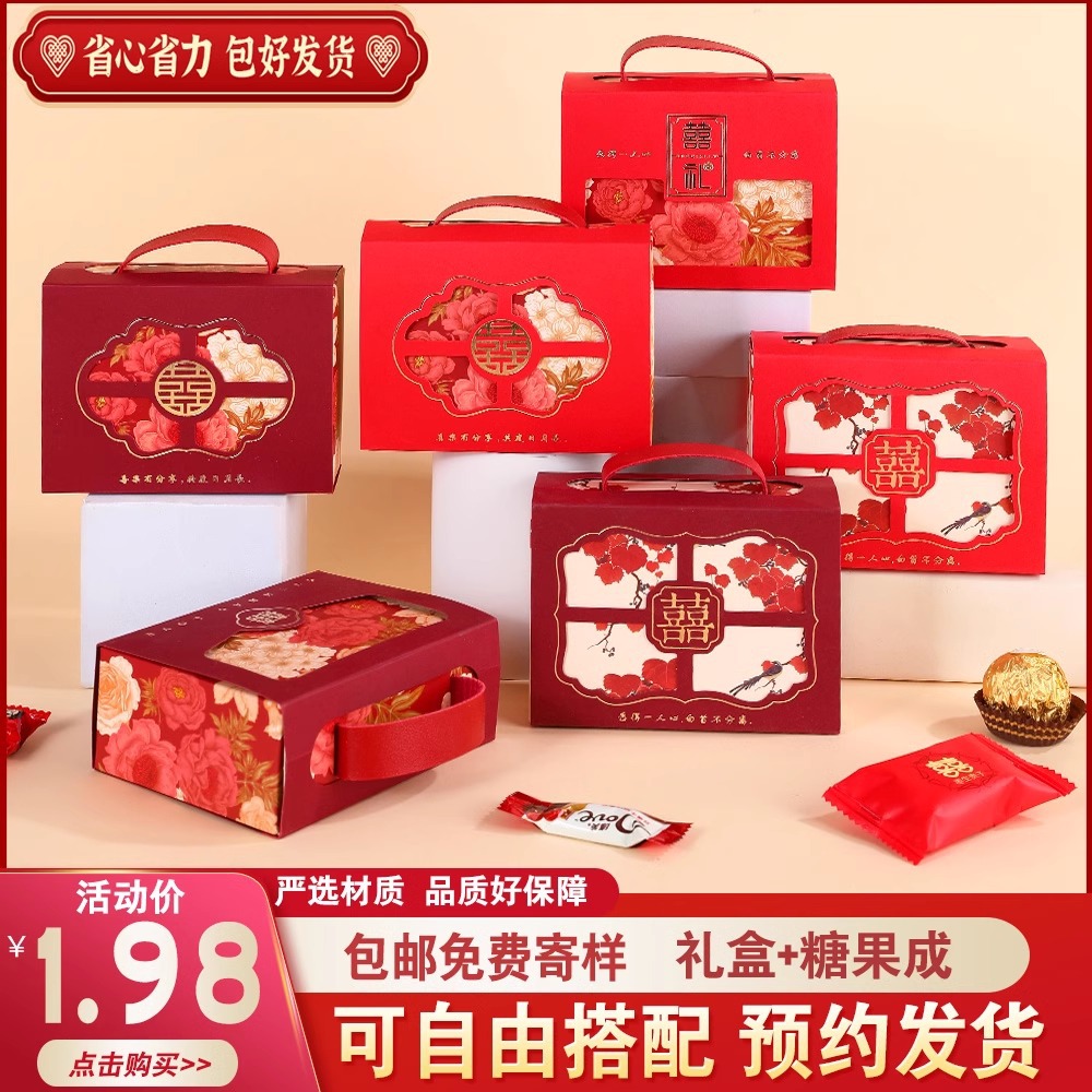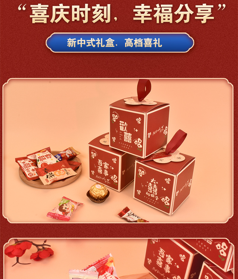 結婚喜糖完成品含糖礼箱中国風結婚式手提げ袋混合チョコレート含糖糖箱包